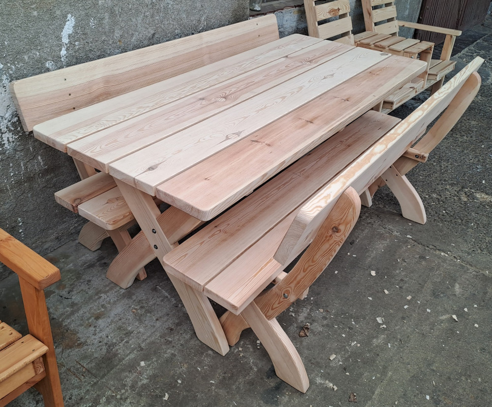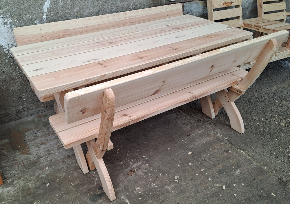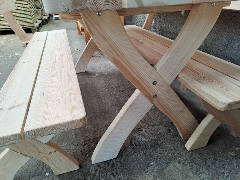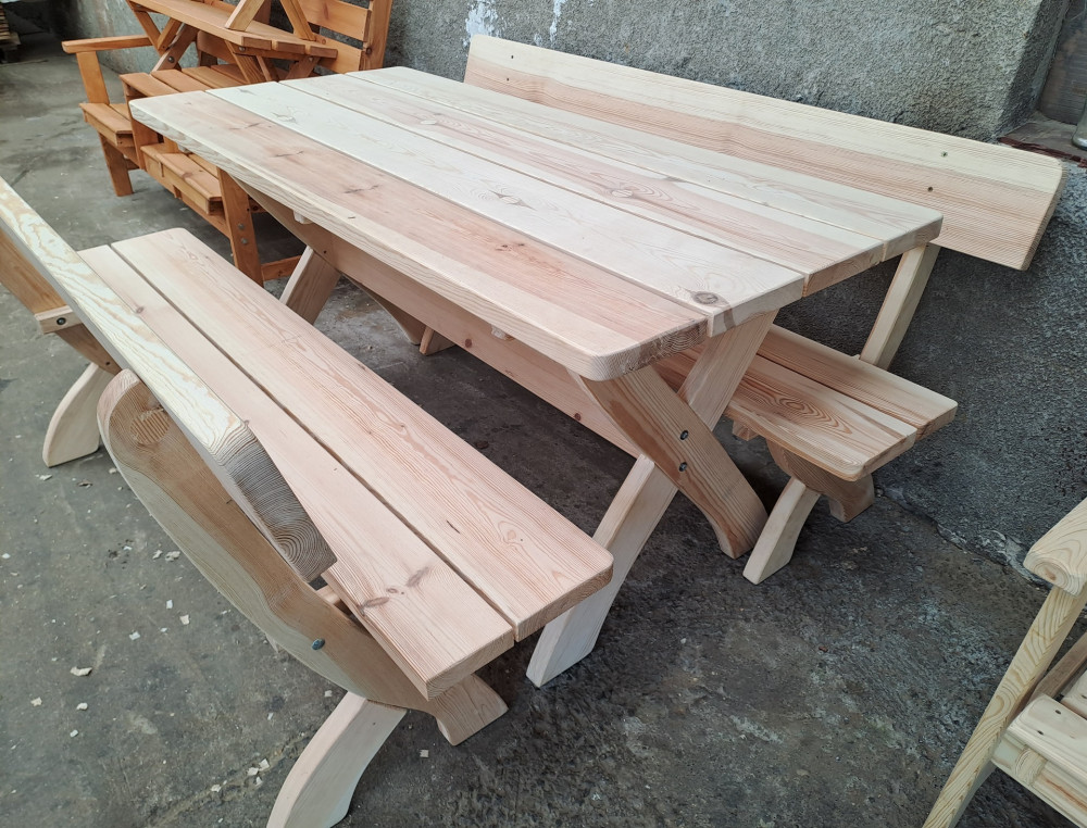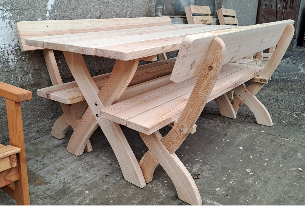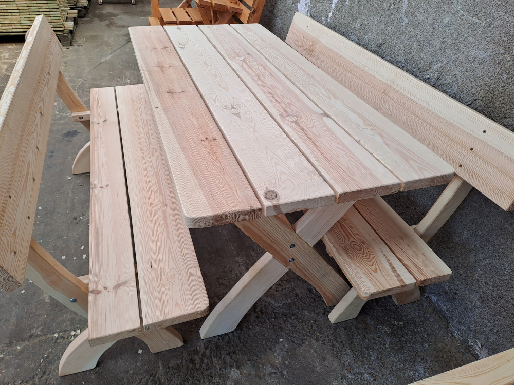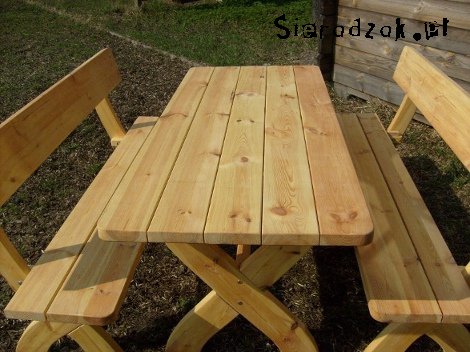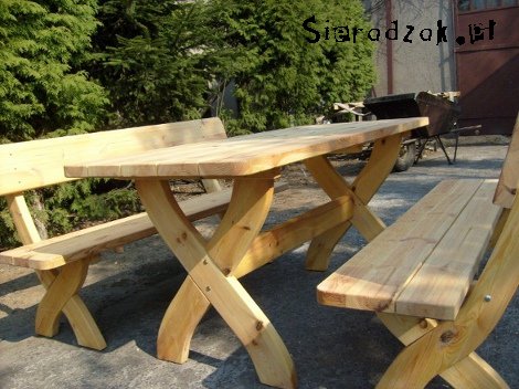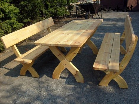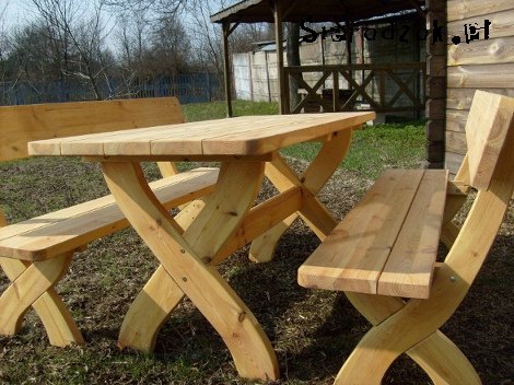 ZESTAW OGRODOWY DREWNIANY- STÓŁ+ 2 ŁAWKI