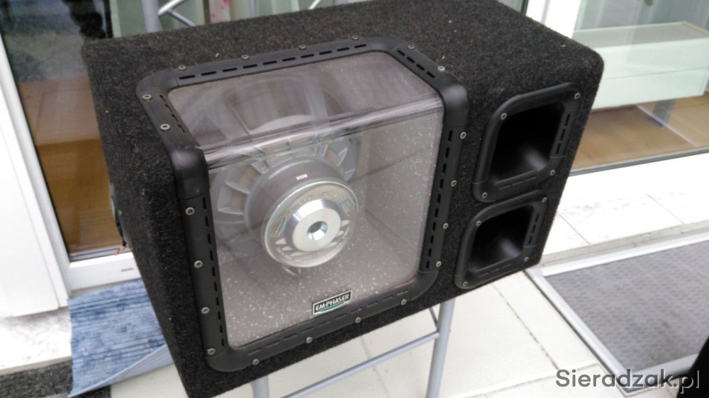 Obudowa z mdf 2,5cm waga ok.20kg moc 250 wat ciągłej RMS pasmo 25hz-150hz