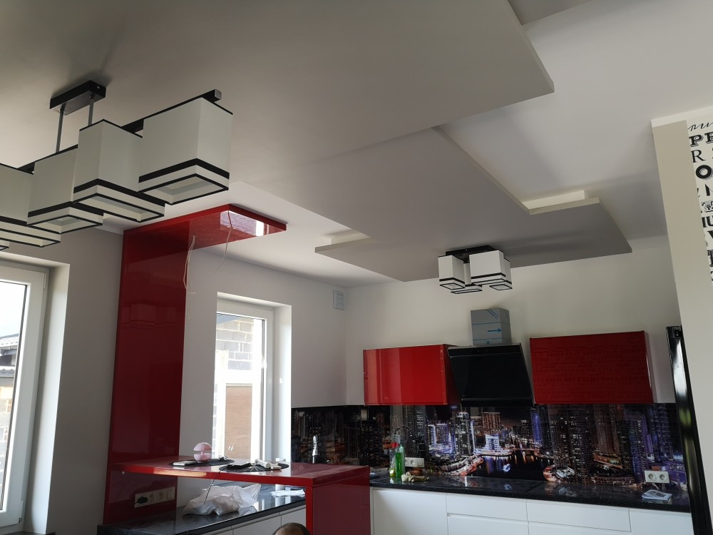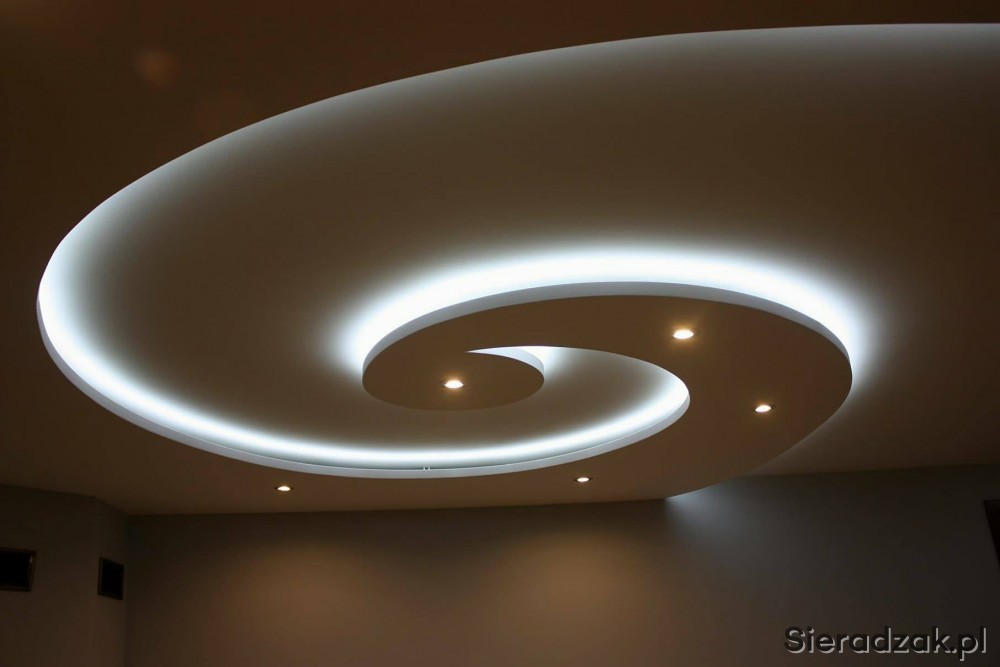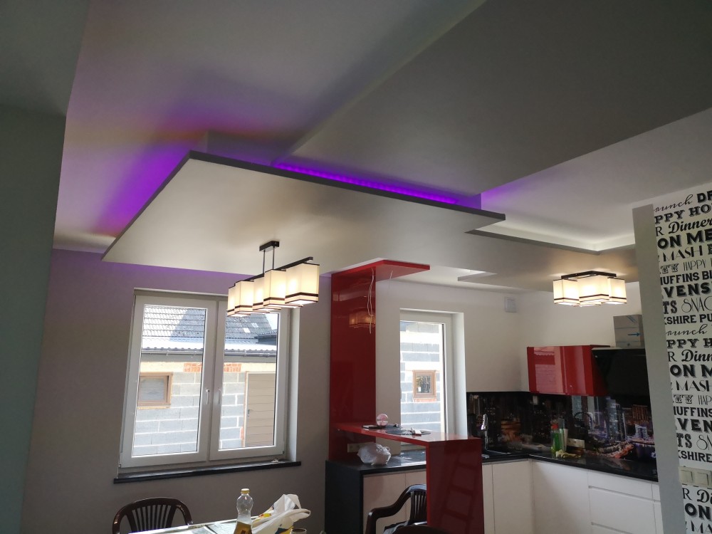 Sufity podwieszane podświetlane LEDem, jedno, kilku poziomowe, w różnych kształtach.