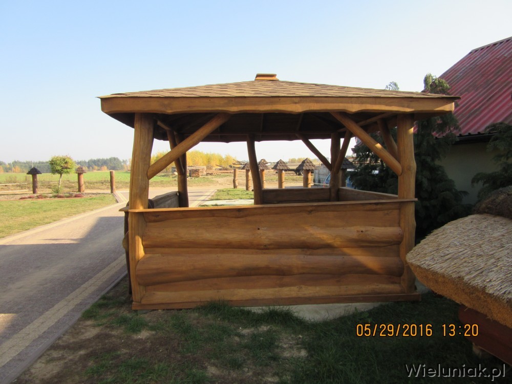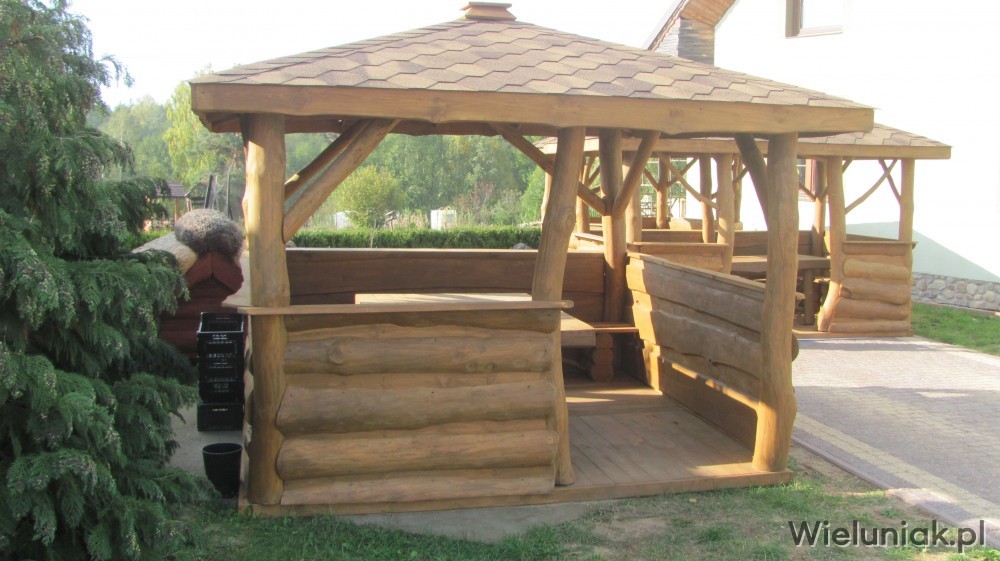 1.Słupy altany wykonane z bali z możliwą naturalną krzywizną o średnicy ok. 16 cm.