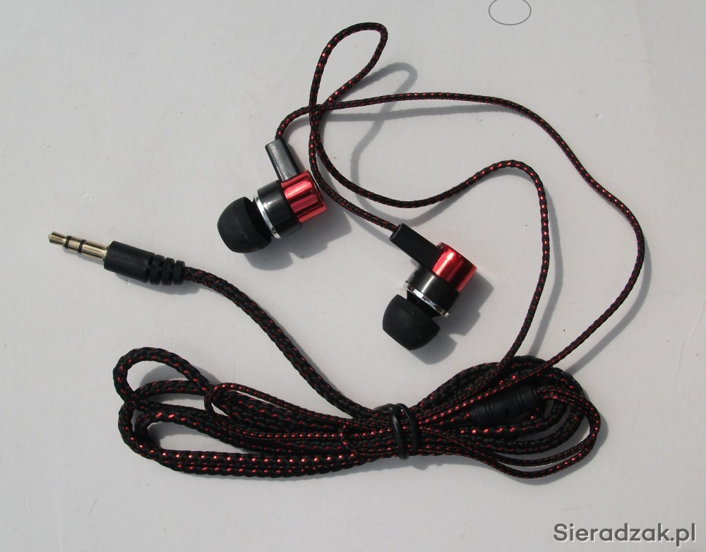 Metalowe słuchawki stereo Super Bass na kablu w mocnym sznurowym oplocie