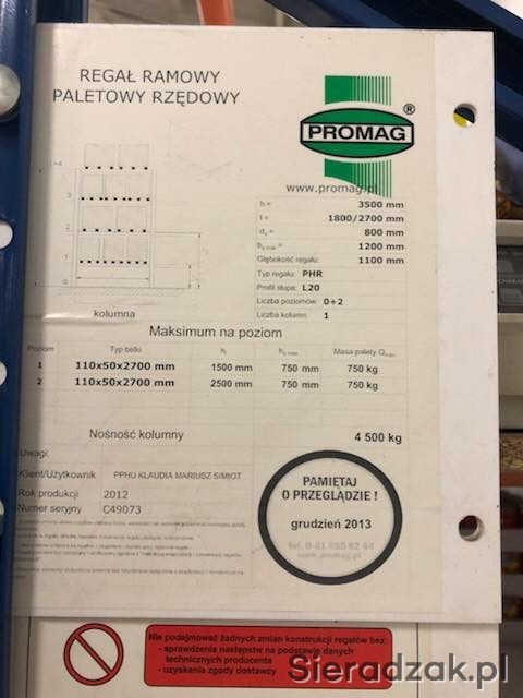 Sprzedam regały magazynowe firmy PROMAG mało urzywane jak nowe.
