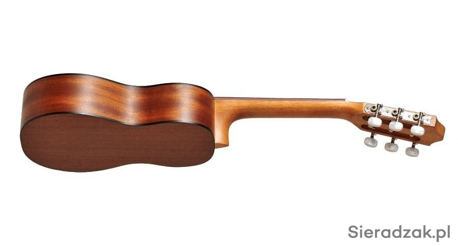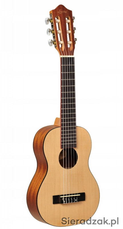 Instrument wykonany z drewna sapele i świerku gwarantuje ciekawe i pełne brzmienie. Fabrycznie założone wysokiej jakości struny nylonowe.Guitalele to skrzyżowanie gitary klasycznej z ukulele tenorowym.