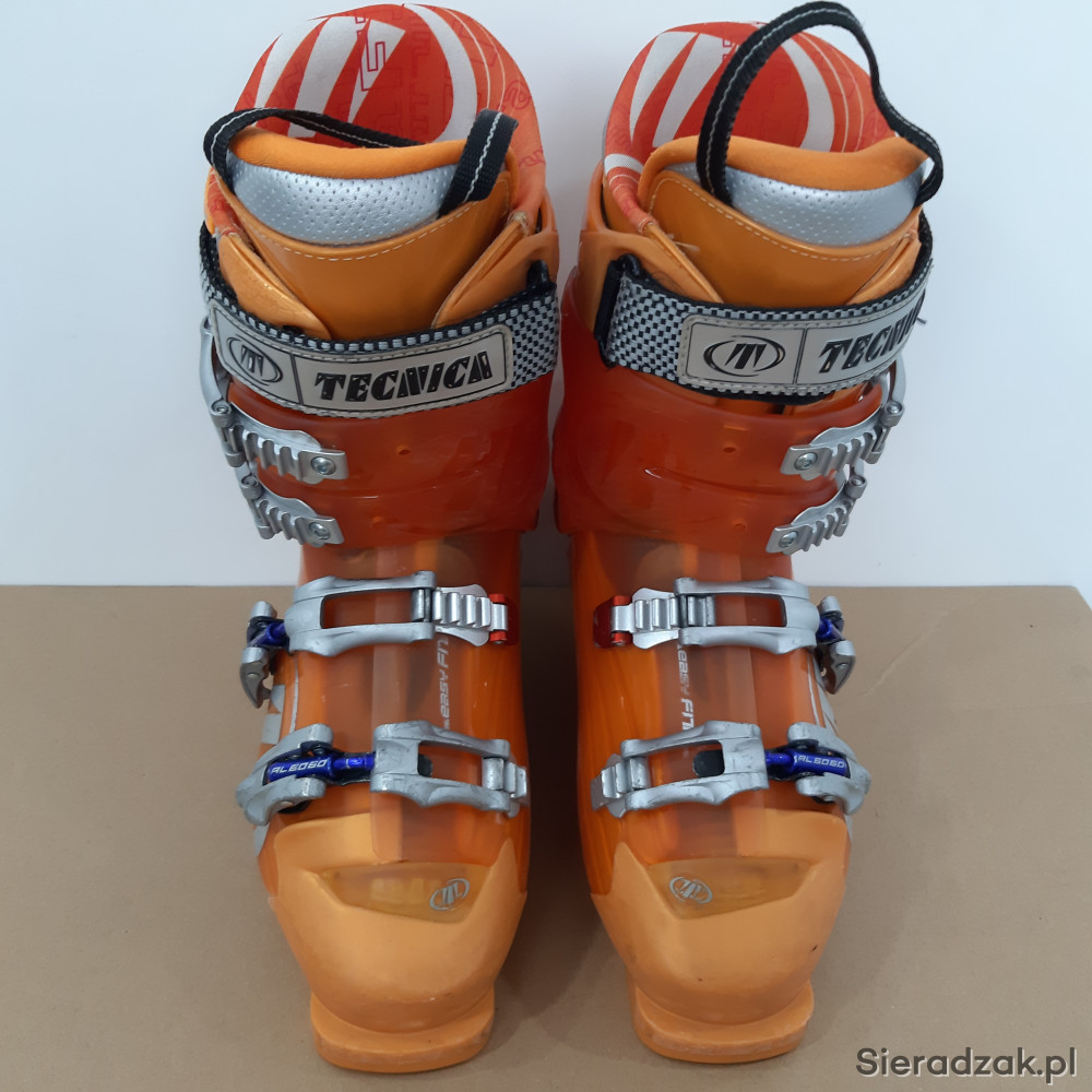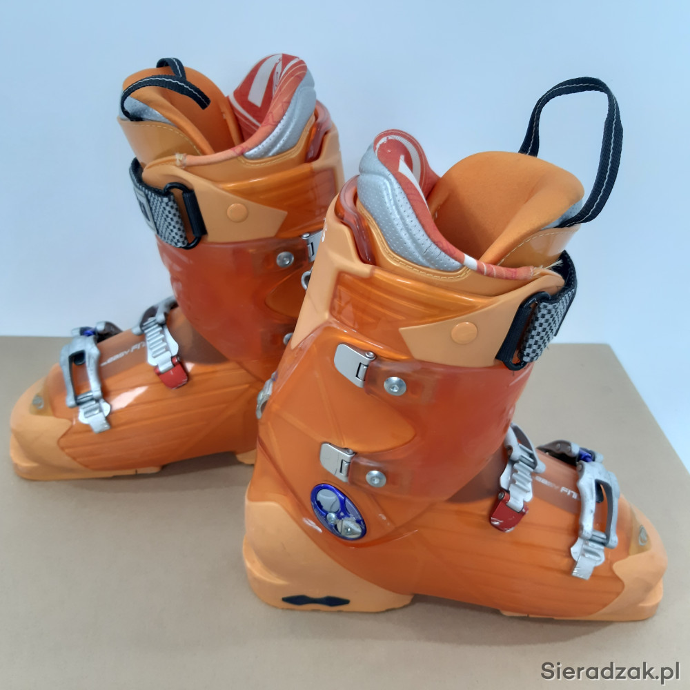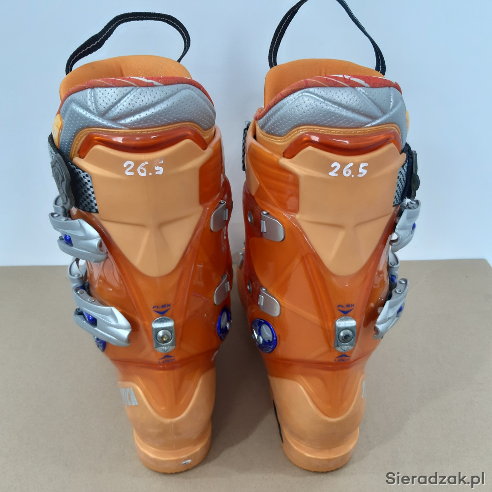 używane buty narciarskie w rozmiarze 42,długość wkładki wewnętrznej 265mm,4 klamry z micro regulacją,skorupa o długości 304mm.buty z niewielkimi śladami użytkowania.