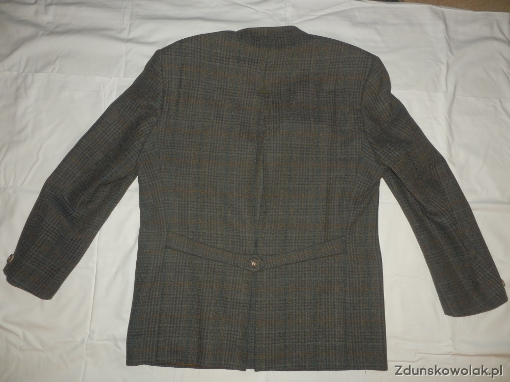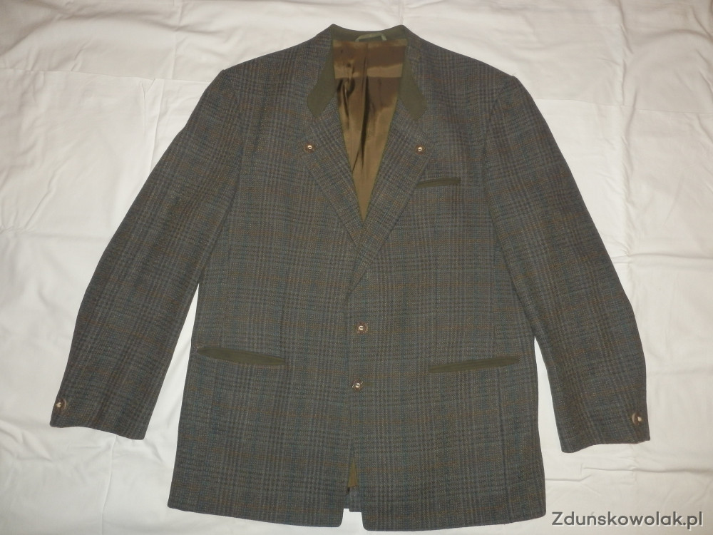 Fajną , w stylu bawarskim marynarkę w kratę odsprzedam komuś kto lubi nietypowe ubrania. Ten fason ze stójką , i z tyłu patką oraz guzikami rogowymi,swym krojem i elegancją wyglądu ucieszy przyszłego nabywcę . Zapraszam do zakupu. Rozmiar to 52/175 a firma to Rofan Tracht.