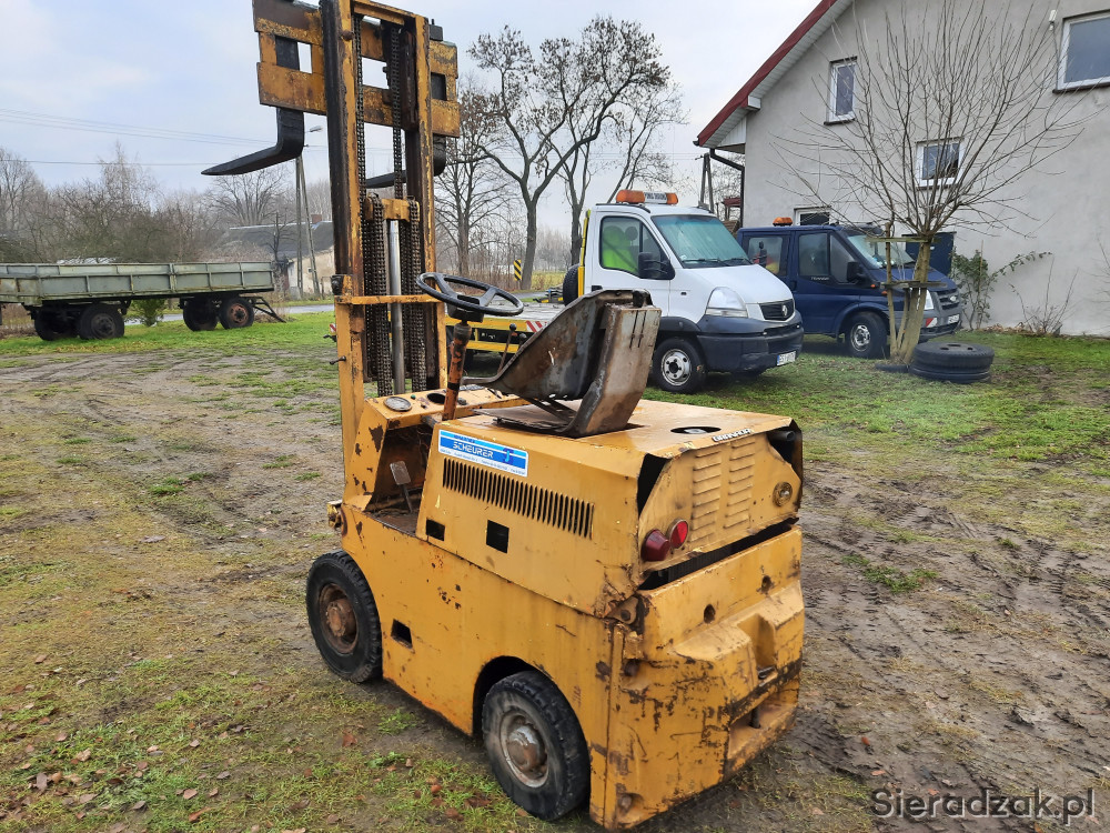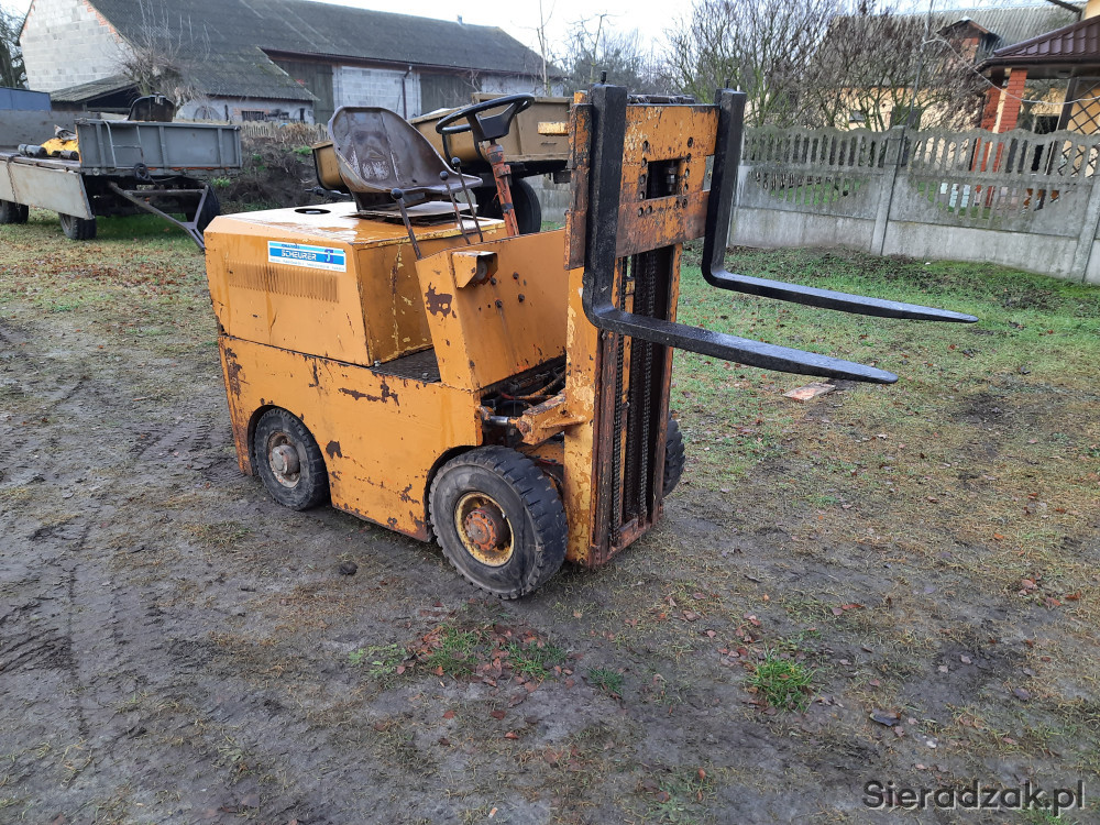 wózek sprawny gotowy do pracy, wyposażony jest w niski maszt z wolnym skokiem świetnie nadaje sie do pracy w niskich pomieszczeniach wysokość podnoszenia 2,40 m. Silnik C330 Ursus nieposiada żadnych przecieków, pali na dotyk i ma moc.