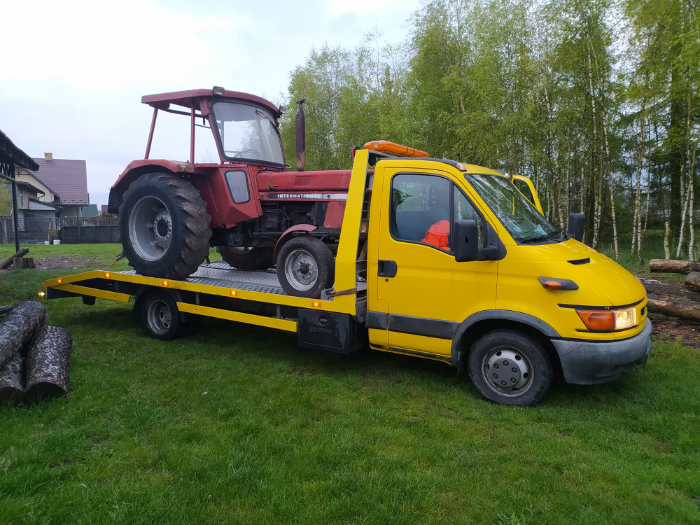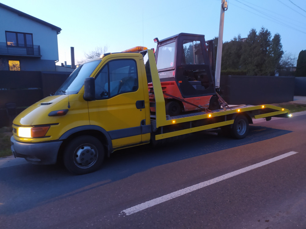Transport pojazdów laweta od dmc 6.5 T ( waga ładunku do 4 T) : aut sprawnych i uszkodzonych , sprzetu budowlanego, maszyn rolniczych, ciagników, przyczep, minikoparek, podnośników nożycowych itd .
