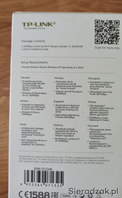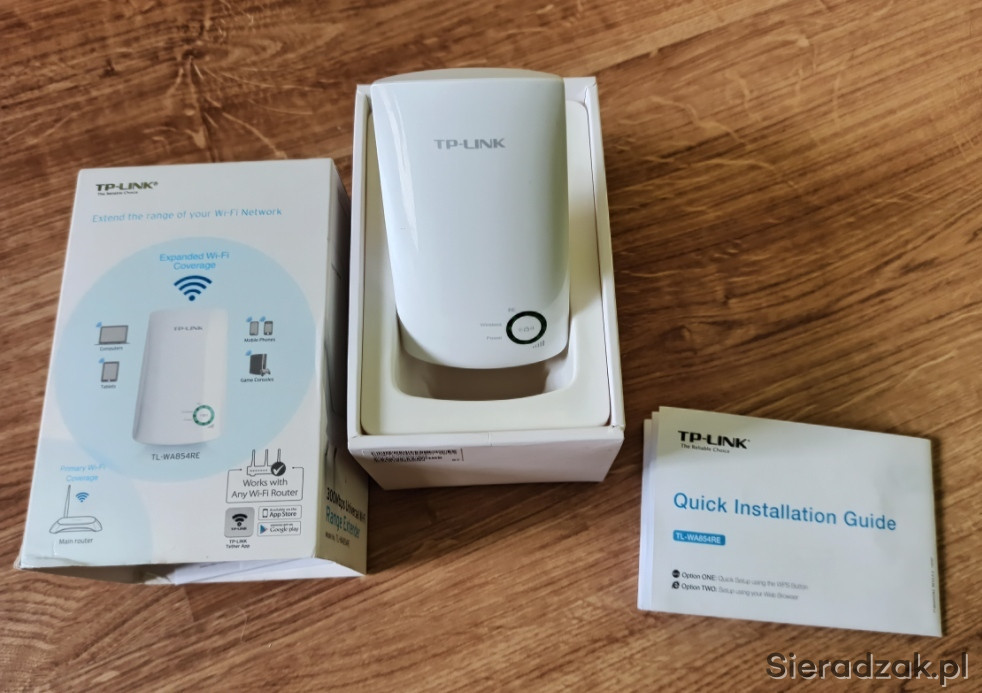 Sprzedam wzmcniacz wygnału WiFi TP-LINK TL-WA854RE przeznaczony do zwiększenia zasięgu i siły sygnału istniejącej sieci bezprzewodowej.