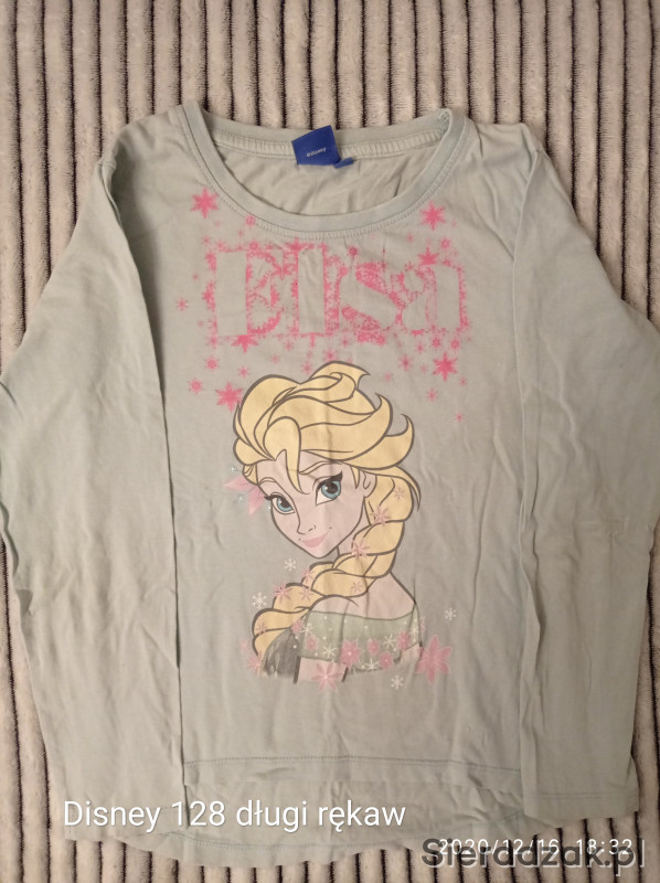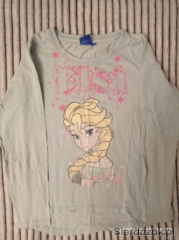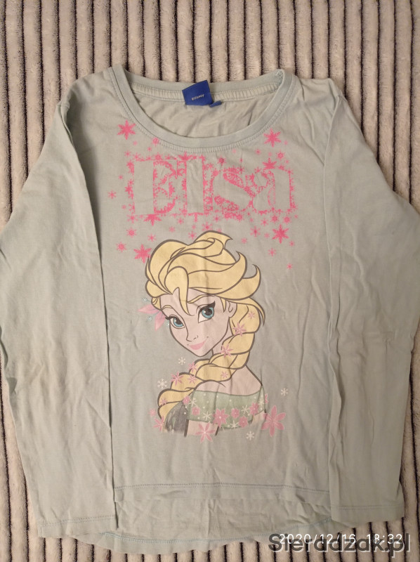 Bluzka dziewczęca Kraina Lodu ELSA Disney rozmiar 128. Kolor niebieski. Stan bardzo dobry -