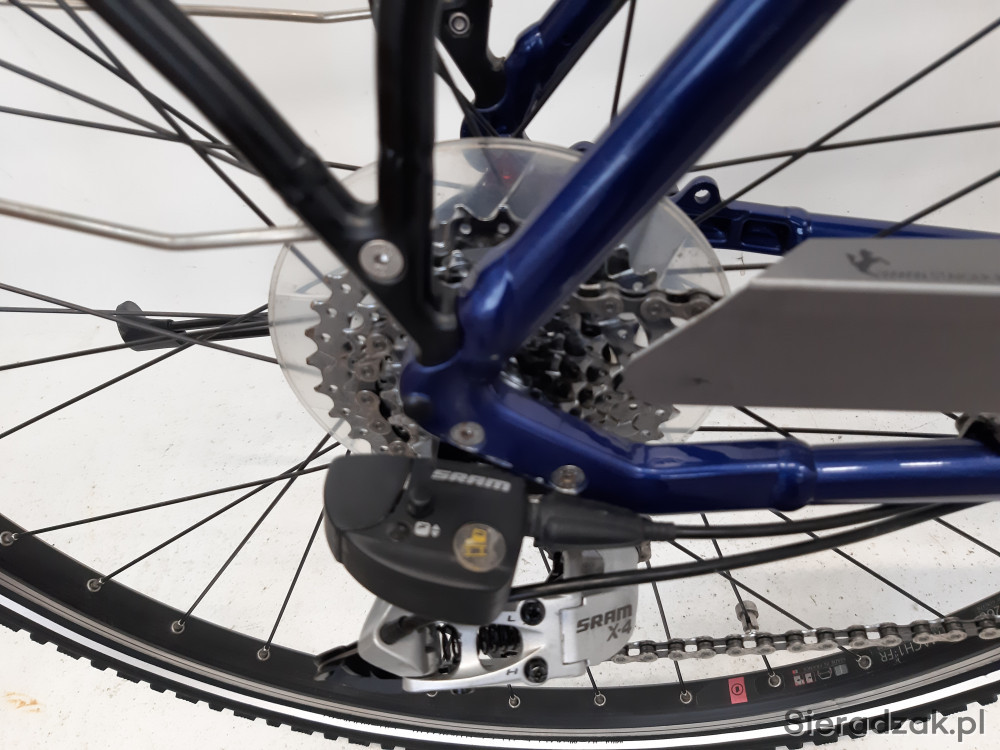 rama aluminium 20" 50cm,przerzutka planetarna sram x-4(napęd 8-rzędowy + 3 biegi w piaście),manetka dual drive,amortyzator sr suntour ncx d-eb lo z blokadą skoku,hamulce hydrauliczne magura hs 22,oświetlenie ledowe lumotec,opony schwalbe road cruiser,siodełko selle royal free way,sztyca podsiodłowa xlc z amortyzacją,kierownica xlc,mostek kierownicy xlc evo regulowany,zabezpieczenie tylnego koła protect-o-connect.stan techniczny bardzo dobry,wizualnie niewielkie ślady użytkowania.obciążenie max 130kg.