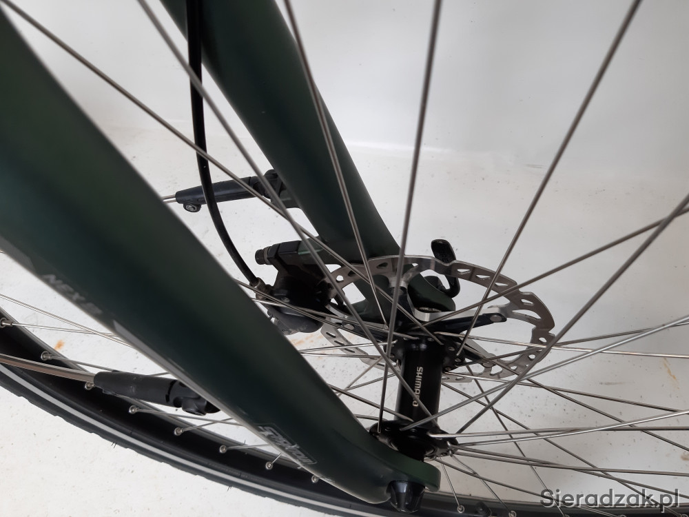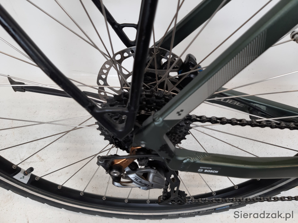 rama aluminium superlite 58cm,napęd 9-rzędowy,przerzutka shimano alivio,manetka shimano altus,hamulce hydrauliczne shimano 160/160mm,amortyzator sr suntour nex e25 hlo z blokadą skoku,siodełko selle royal ariel z amortyzowaną sztycą podsiodlową,kierownica i mostek cube,oświetlenie zasilane z akumulatora,opony schwalbe range cruiser active.waga roweru 23.3kg.stan techniczny bardzo dobry,wizualnie niewielkie ślady uzytkowania.