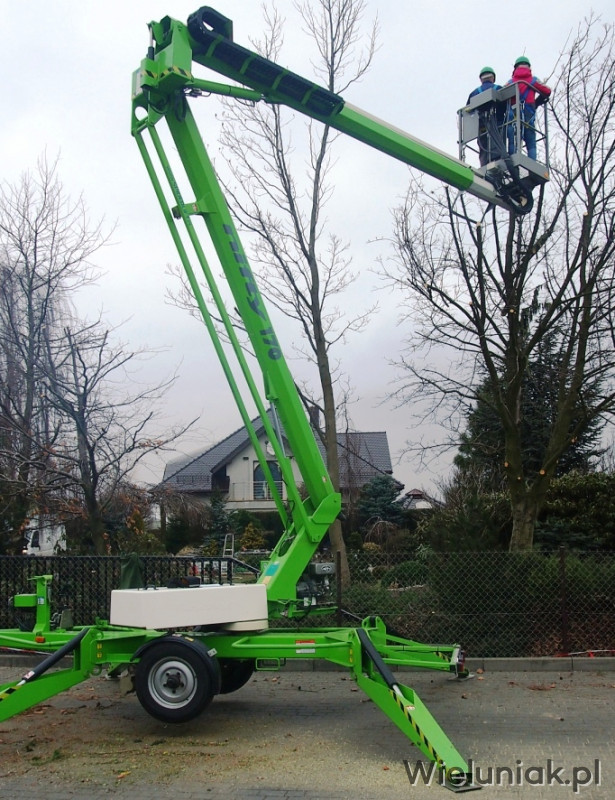 Wycinkę drzew oraz podcinanie gałęzi prowadzimy z użyciem podnośnika koszowego - zwyżki o wys. roboczej 21 m, wysięgu bocznym 12 m oraz udźwigu 225 kg/2 os. + 65 kg.