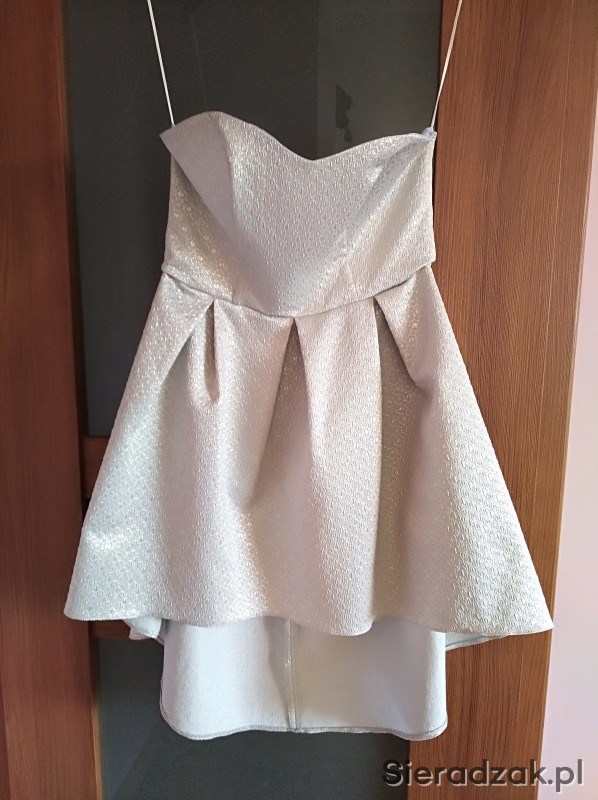 Sukienka czysta, bez zniszczeń. Założona na jedną okazję. Materiał lekko błyszczący. Dla osoby w rozmiarze 30/40.