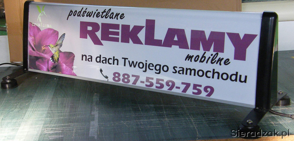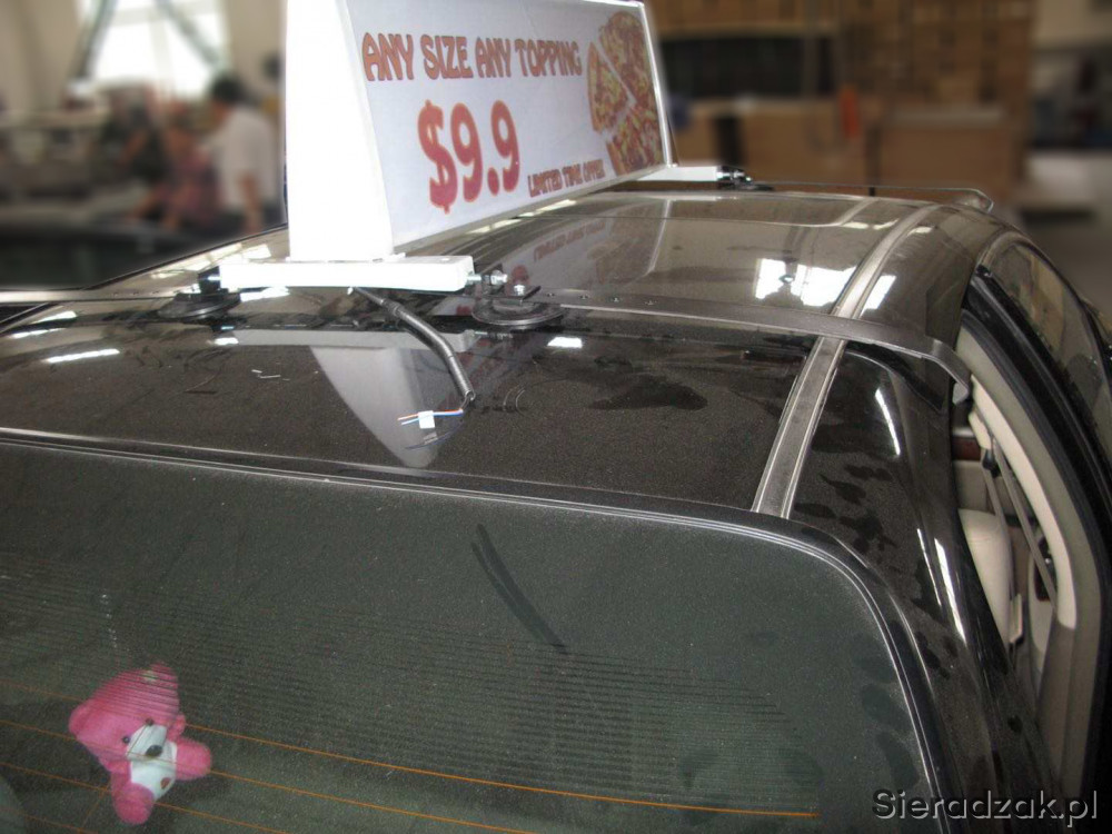 Oferujemy Państwu samochodowy kaseton reklamowy mocowany na wsporniki lub magnes.