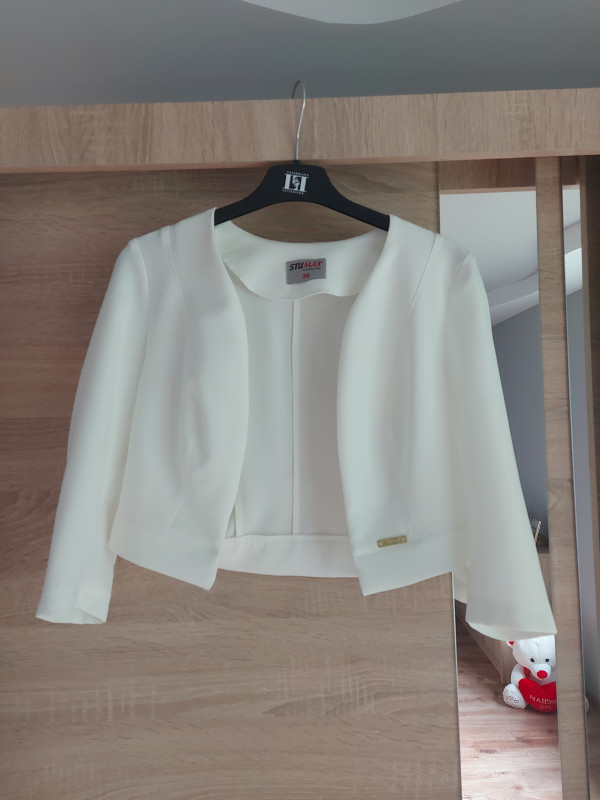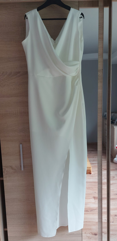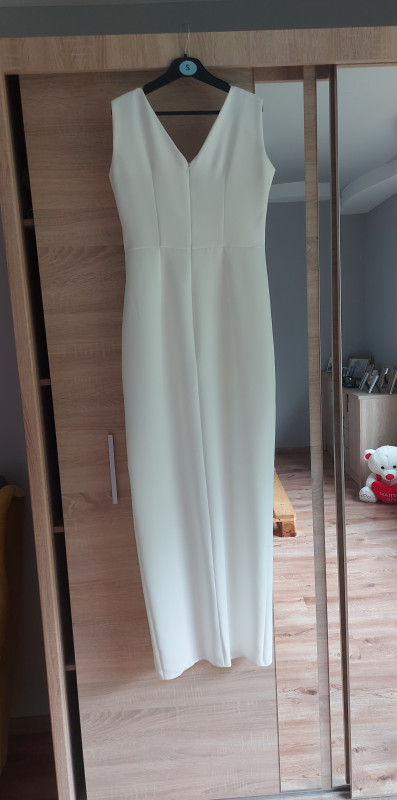 Sprzedam sukienke w kolorze złamanej bieli. Rozmiar z metki to 42 ale rozmiar faktyczny to 36/38. Do sukienki posiadam również bolerko w tym samym kolorze nowe, nieużywane. Sukienka w stanie idealnym, raz założona. Bardzo lekka i wygodna. Idealnie nadaje się na ślub cywilny lub kościelny lub inna okazje. Bardzo ładnie się prezentuje. Dla zainteresowanej pani wyśle więcej zdjęc.