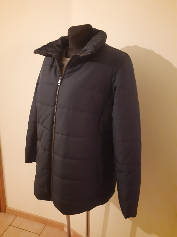 Kurtka zimowa damska zakupiona w C&A, model za biodra, kolor ciemny granat, bardzo lekka a jednocześnie ciepła, rozm. XL (46-48). Używana kilka razy. Polecam!