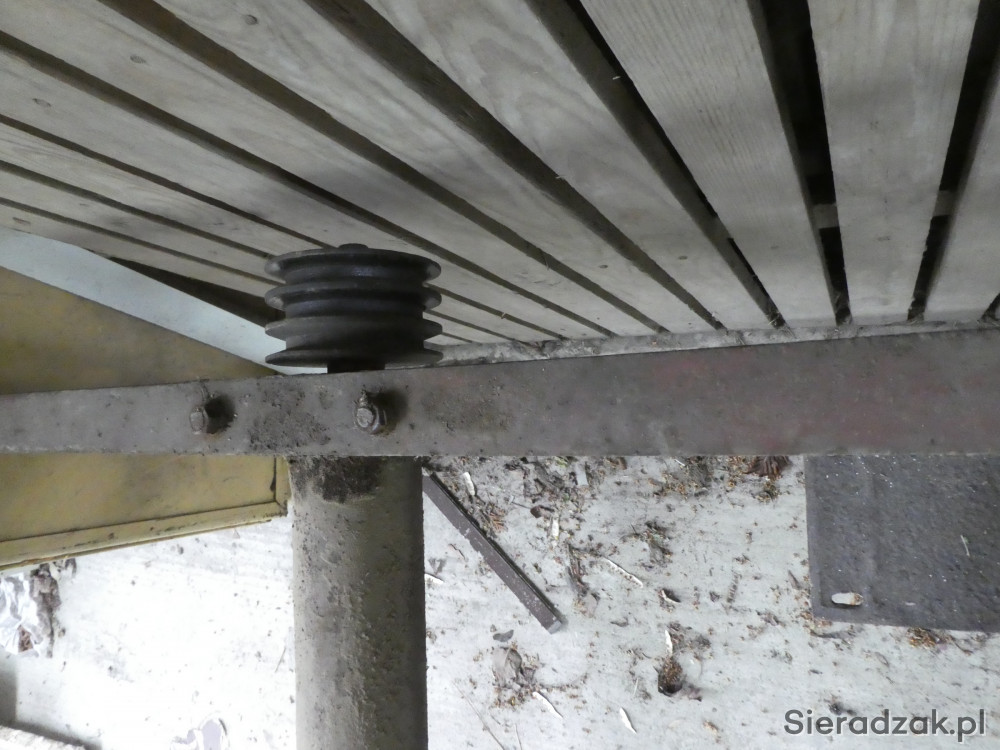 Do sprzedania piła krajzega - własnej produkcji - mocna konstrukcja z ceowników gorącowalcowanych, solidny wałek, silnik 7kW z włącznikiem gwiazda-trójkąt (silnika nie ma na zdjęciach). W latach '80 cięliśmy na niej podkłady kolejowe. Trzeba zrobić nowy blat stołu piły, ten co był (z grubej sklejki) nie przetrwał próby czasu oraz kupić nowe paski klinowe też pokonał je czas. Ale jak już to zostanie wymienione będzie służyć jeszcze dzisięciolecia.