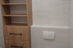 W drugim pokoju duża szafa, biurko, szafki oraz łóżko.