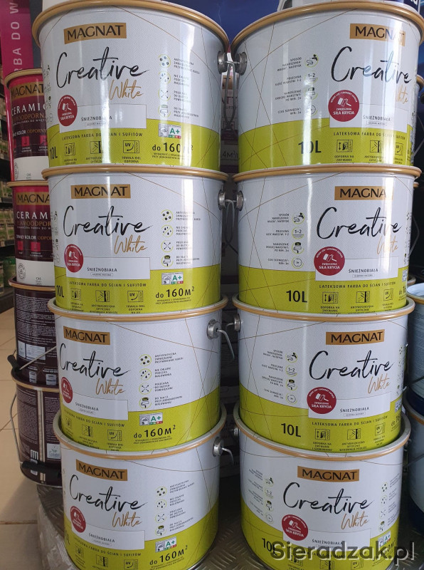 Magnat Creative to farba hybrydowa, łącząca ze sobą dwie właściwości: odporność na płynne zabrudzenia (hydrofobowość) oraz odporność na tłuszcze (oleofobowość). Farba przeznaczona jest do dekoracyjnoochronnego malowania ścian i sufitów z zapraw cementowych, cementowowapiennych, gipsowych, cegły, płyt gipsowokartonowych, drewnianych, drewnopochodnych oraz tapet, również tych z włókna szklanego użytkowanych wewnątrz pomieszczeń.