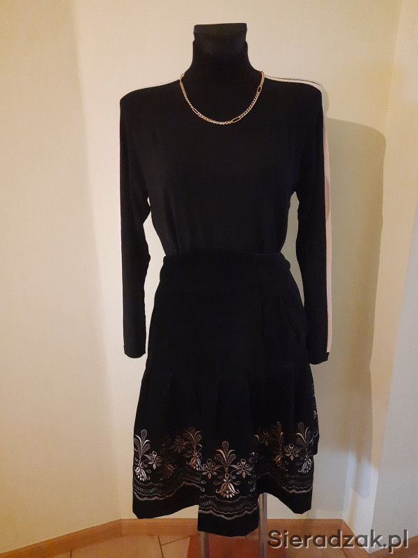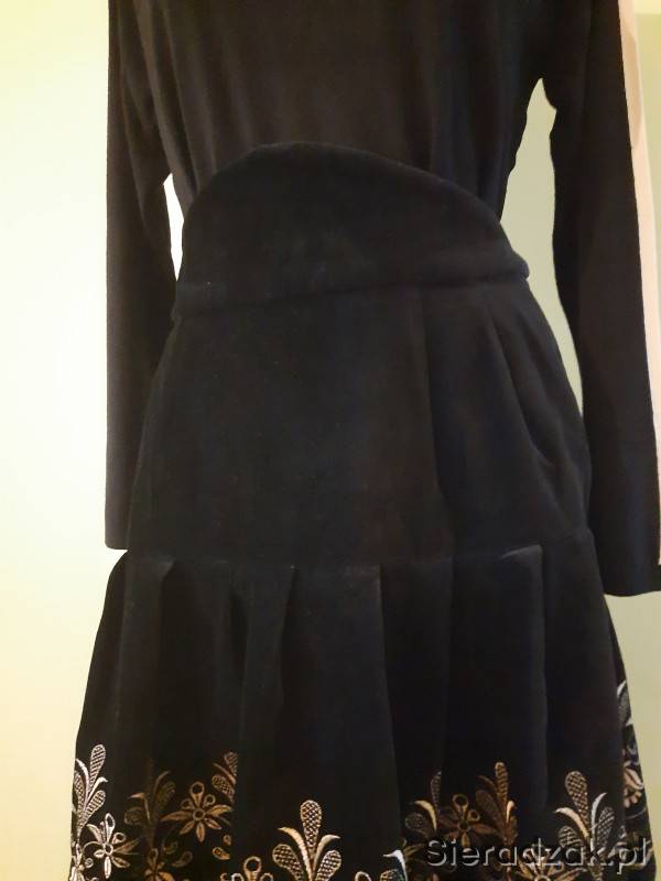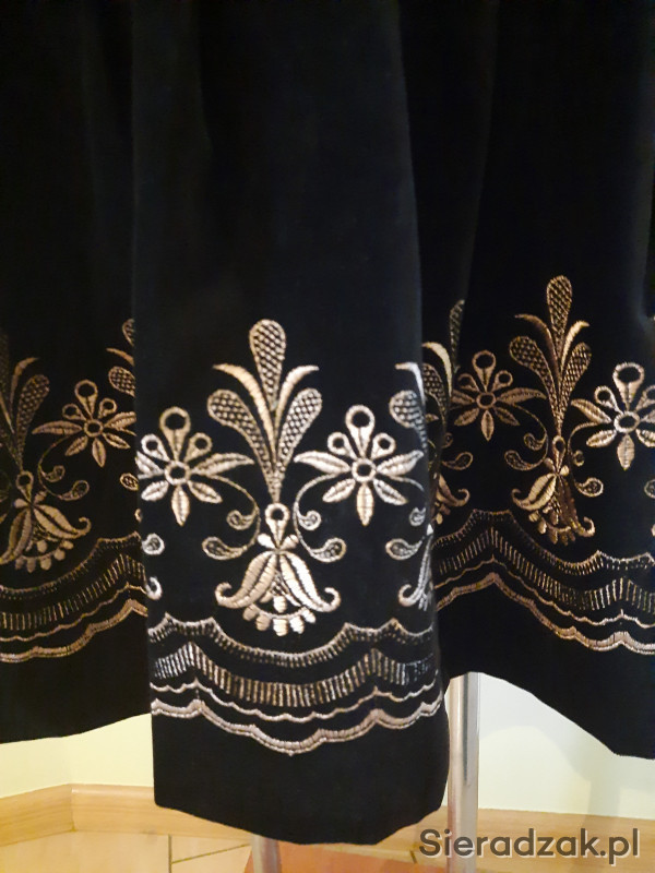 Piękna, czarna spódnica z aksamitu ze złotą aplikacją na dole, rozmiar 40-42. Używana kilka razy, czysta i zadbana. Polecam!