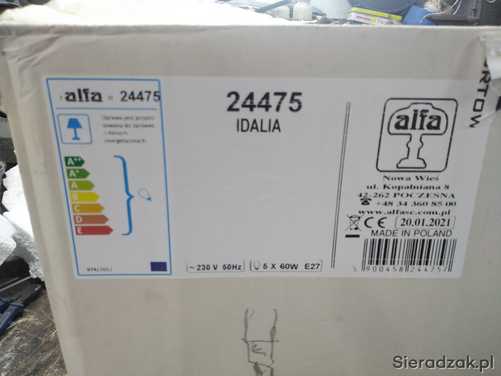Witam mam do sprzedania nowy żyrandol firmy Alfa model Idalia. Zyrandol jest nowy nigdy nie był montowany z powodu uszkodzenia jednego klosza. Pozostałe klosze są w bardzo dobrym stanie technicznym, nowe. Polecam, więc informacji pod nr tel. 660 715 446