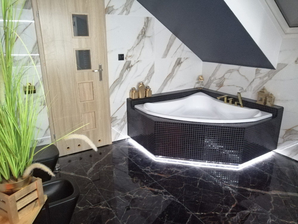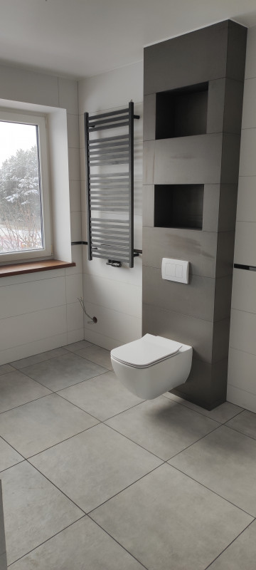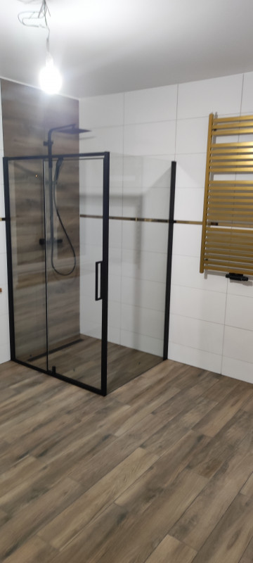 Komleksowe łazienki m. in. płytki również duże gabaryty, hydroizolacja, odpływ liniowy, biały montaż, przeróbki elektryczne oraz hydrauliczne, równanie ścian i posadzki nie musisz szukać innego fachowca.