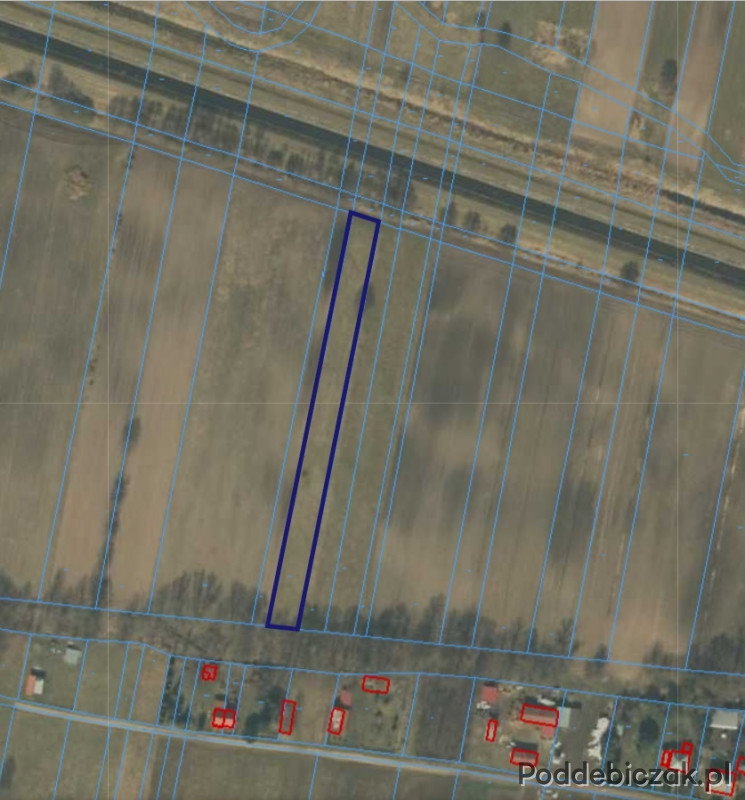 2. Działka o powierzchni 2900 m2 znajdująca się za działką o powierzchni 8400 m2. Działka nie ma dostępu do drogi publicznej. Szerokość 13 m.