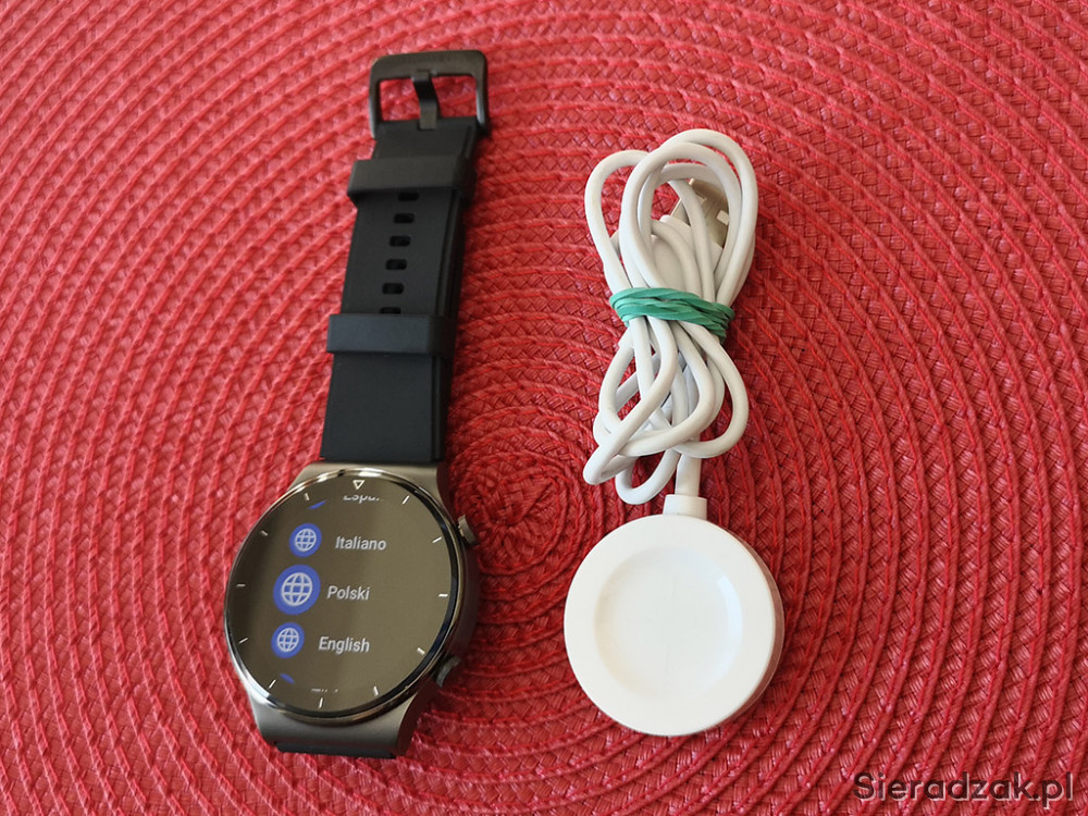 Do sprzedania oferuję zadbany smartwatch Huawei Watch GT2 Pro Sport (wersja z silikonowym czarnym paskiem).