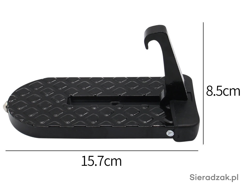 Oferuję uniwersalny podnóżek, stopień zaczepiany o rygiel drzwiowy na słupku samochodu. Łatwy w instalacji, innowacyjny projekt, służy do dostania się na dach pojazdu i jego załadunek lub umycie itp.
