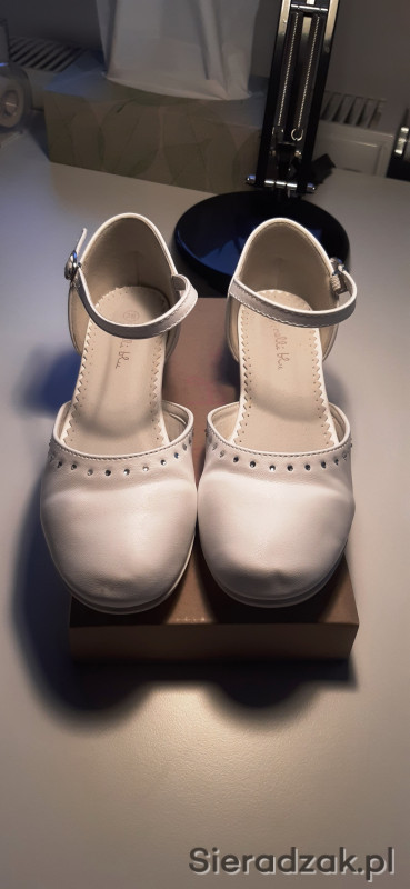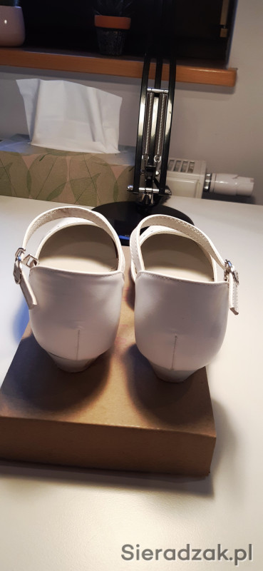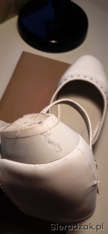 Do sprzedania są również buty rozmiar 36 za 20 zł oraz bolerko za 20 zł. Prawy but ma zarysowany obcas.