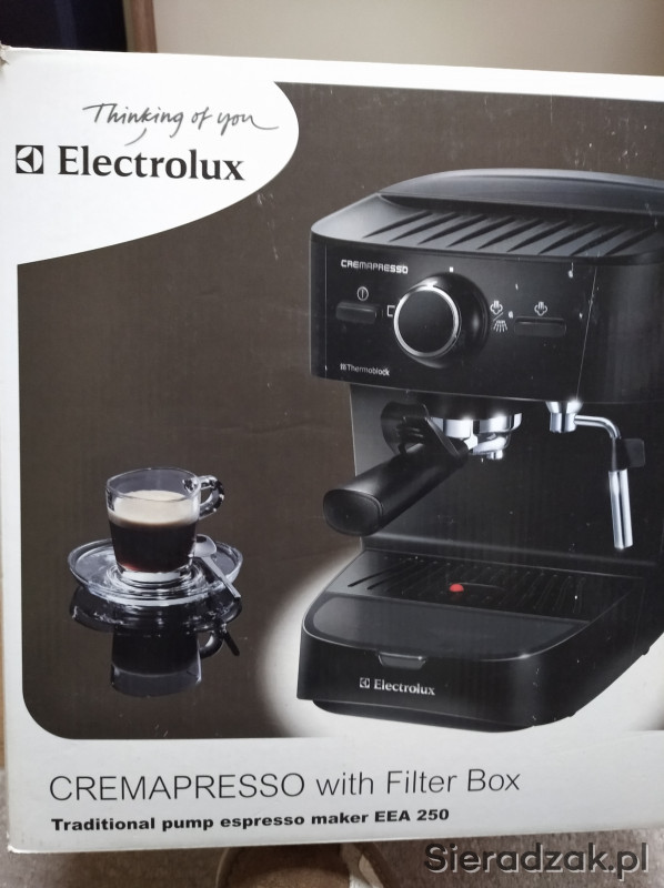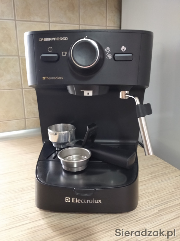 Sprzedam używany ekspres wysokociśnieniowy Electrolux EEA 250 o mocy 1250 W umożliwia otrzymanie doskonałego espresso, cappuccino lub latte macchiato. Unikatowy pojemnik na filtry jest umieszczony z przodu tacki ociekowej, dzięki czemu akcesoria są łatwodostępne. Podgrzewana tacka na filiżanki pozwala podgrzać filiżanki tuż przed użyciem.