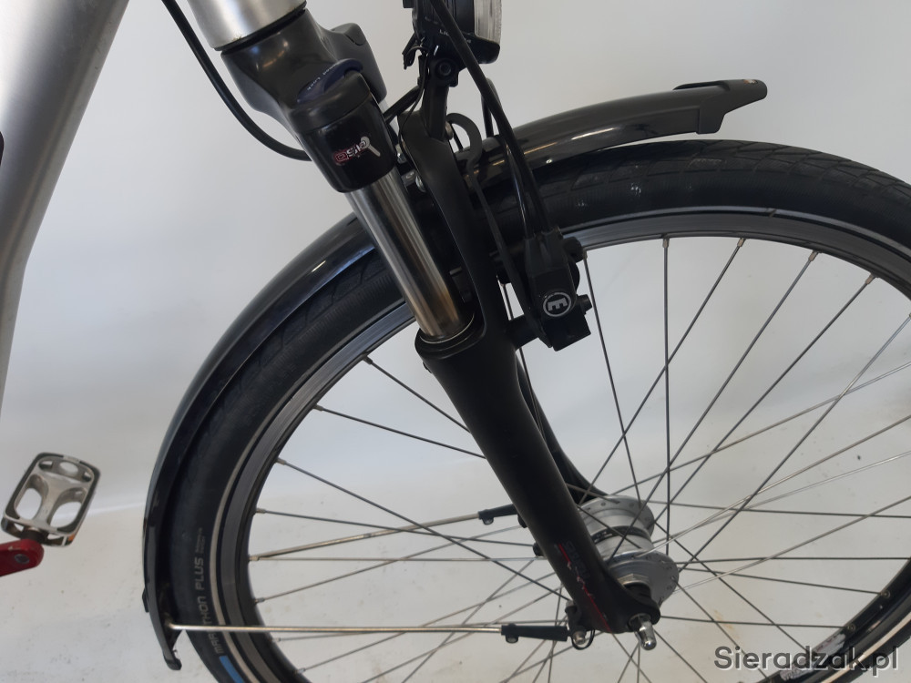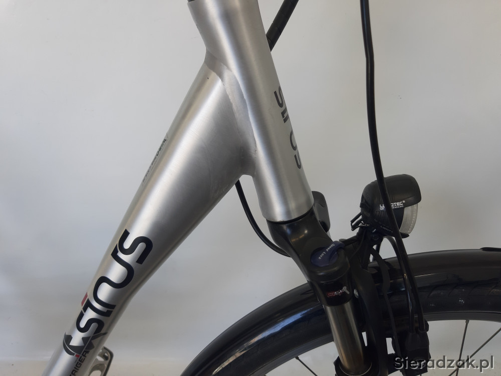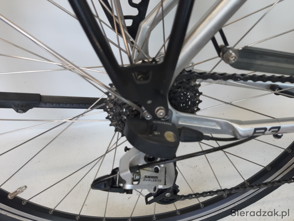 rama aluminium 21" 54cm,przerzutka planetarna sram dual drive 3 biegi w piaście + napęd 9-rzędowy,hamulce hydrauliczne magura hs11,mostek xlc regulowany,siodło selle royal z amortyzowaną sztycą podsiodłową,amortyzator sr suntour nex z blokadą skoku,dynamo shimano w przednim kole,oświetlenie lumotec,opony schwalbe,blokada tylnego koła.stan techniczny bardzo dobry,wizualnie niewielkie ślady użytkowania.