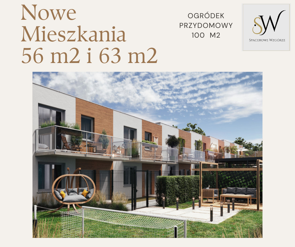 W każdym z 7 budynków w zabudowie szeregowej znajdować się będą dwa samodzielne lokale mieszkalne z indywidualnym wejściem do budynku. Powierzchnia mieszkania z kondygnacji parteru wynosi 56,94 m2,a lokalu z pierwszego piętra 63,96m2, które z pewnością zapewnią jego mieszkańcom wygodę, przestrzeń i komfort codziennego funkcjonowania. Większość z oferowanych w sprzedaży mieszkań posiada prywatny ogródek o pow. od 35 m2 do 100 m2, w którym można szybko zregenerować siły po ciężkim dniu w pracy.