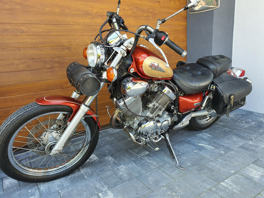 Do sprzedania ładna Yamaha Virago 535 z 2002r. Motocykl sprowadzony z Niemiec bezpośrednio od właściciela z domu. Yamaha bezwypadkowa i cała w oryginale. Przebieg 24459km. Silnik odpala. Skrzynia biegów i sprzęgło pracują bardzo dobrze. Opony w ładnym stanie. Świeżo po czyszczeniu gaźników w myjce ultradźwiękowej. Motocykl na kategorię A2. Zapraszam na oględziny i jazdę próbną. Możliwość dowozu. Na więcej pytań chętnie odpowiem pod numerem telefonu 6 6 7 7 0 2 6 0 0. NIE INTERESUJE MNIE ZAMIANA.