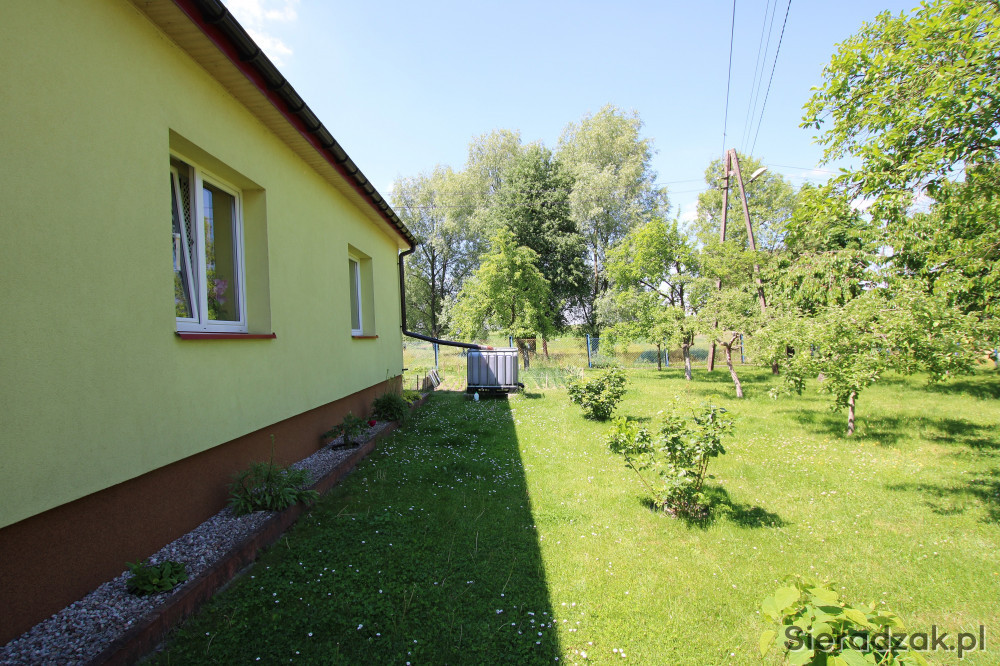 DOM o powierzchni około 100 mkw składający się z salonu, kuchni, pokoju, łazienki, korytarza oraz kotłowni z wejściem z wewnątrz oraz z zewnątrz.
