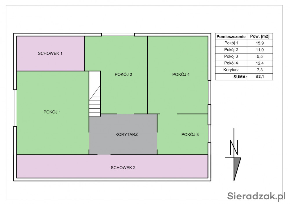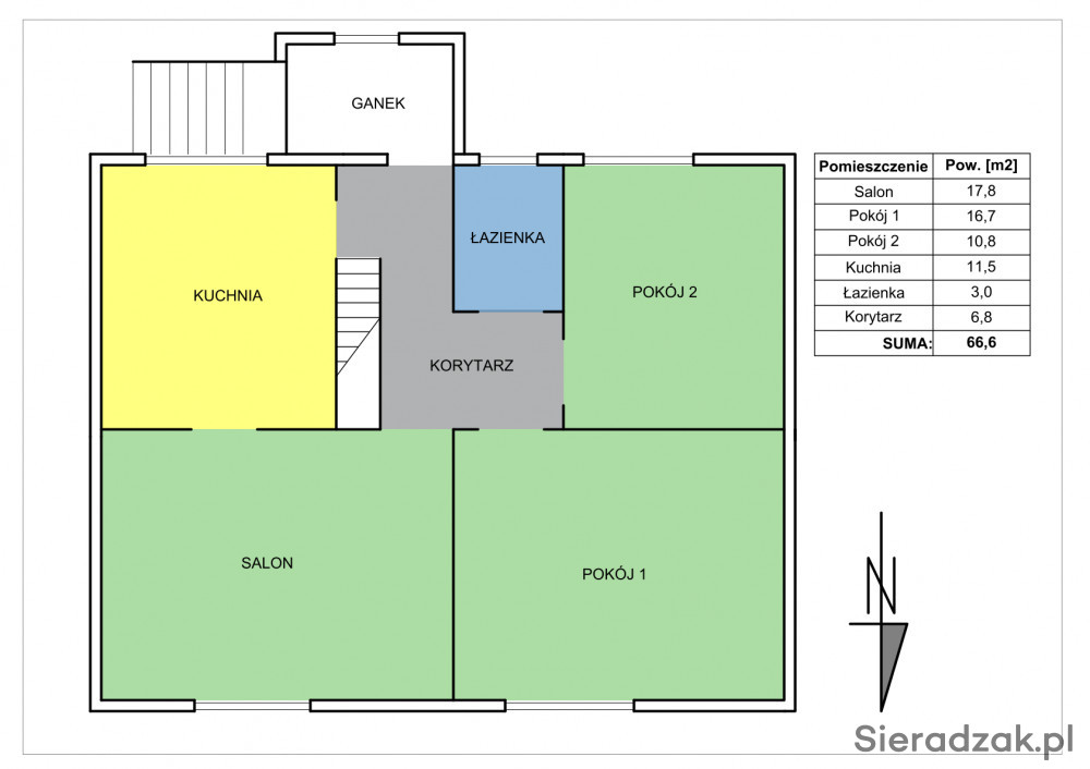 Układ okien północ-południe, podwórko wraz z wejściem do domu od strony południowej.