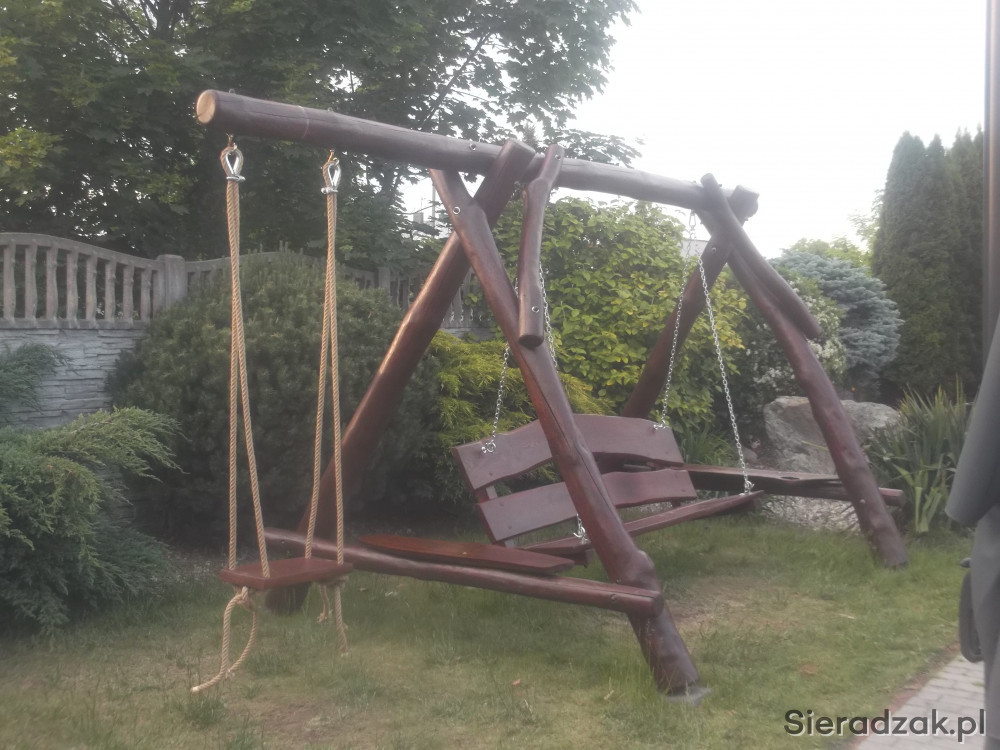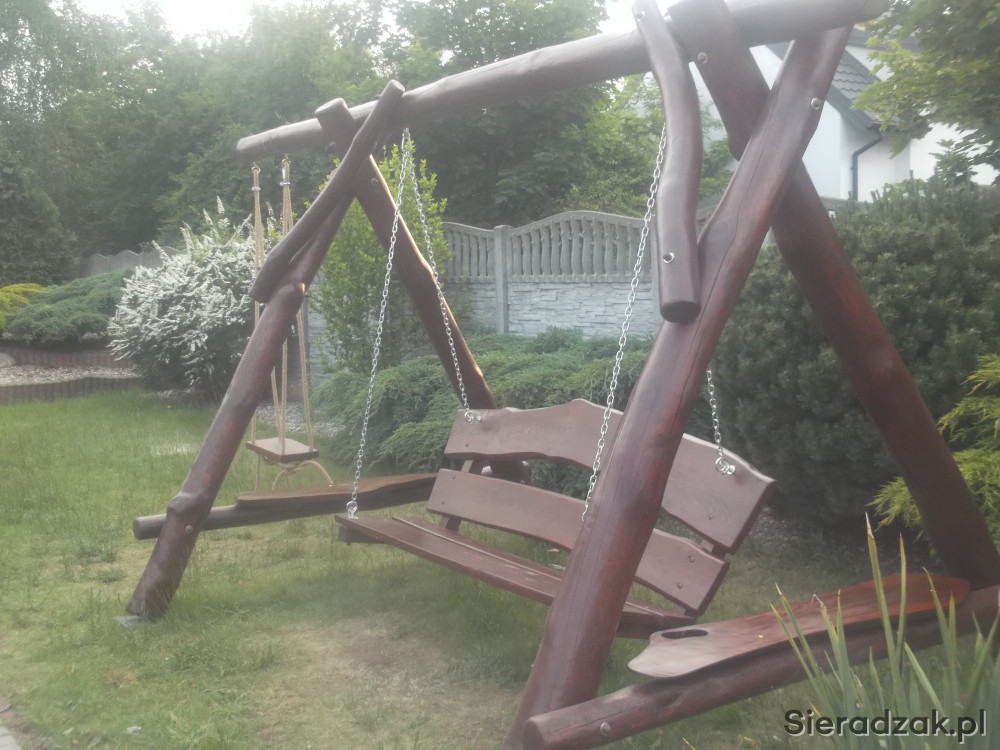 Witam serdecznie,oferuje do sprzedania hustawke wykonana z bali sosnowych sezonowanych3 lata,bale sa suche dokladnie oszlifowane zaimpregnowane preparatem Sadolin( 4 warstwy ).Calosc wykonana starannie-mocno i solidnie. Serdecznie zapraszam. Czas oczekiwania okolo dwa tygodnie,kolor wybrany przez klienta