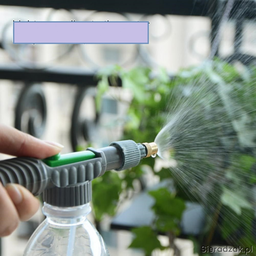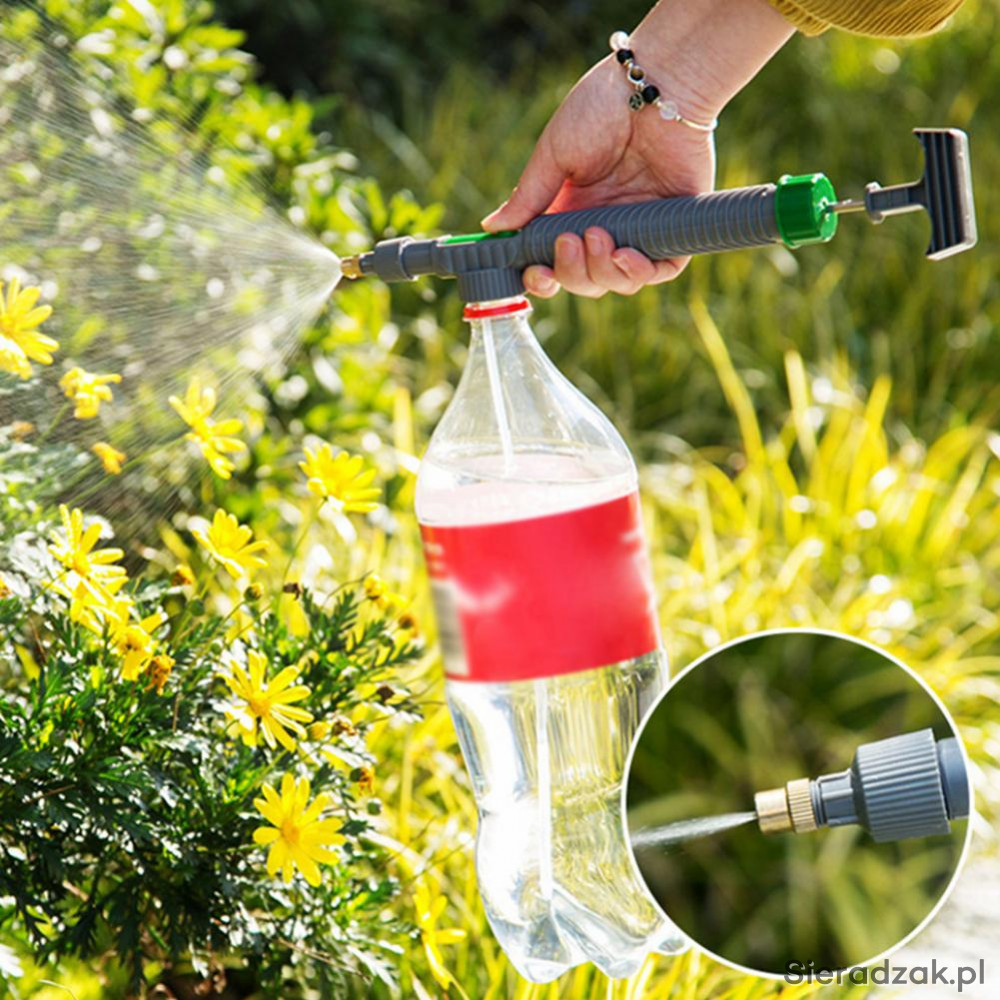 Oferuję uniwersalny opryskiwacz, który montuje się butelkę (np. po wodzie mineralnej). Idealnie sprawdzi się w ogrodnictwie i zastosowaniach domowych. Może być stosowany przy czyszczeniu i dezynfekcji jak również przy zraszaniu i wykonywaniu zabiegów ochrony roślin. Pasuje do większości butelek PET o różnych pojemnościach. Sprawdzona dobra jakość.