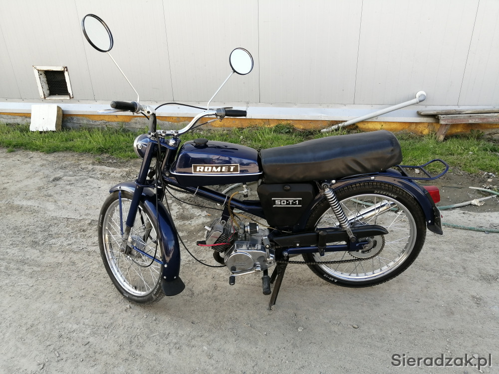 Witam, mam do sprzedania motorower Romet 50 T-1 w stanie bardzo dobrym po kompletnej renowacji kod lakieru LD5Q silnik po remoncie na markowych częściach złożony zębatka piasta wydech wypolerowany na lustro szprychy nowe chrom przed lakierowaniem wszystko było wypiaskowane do gołej blachy rocznik rometa 1985 masa paragonów na części po więcej informacji proszę pisać pozdrawiam i zapraszam również na inne moje aukcje.