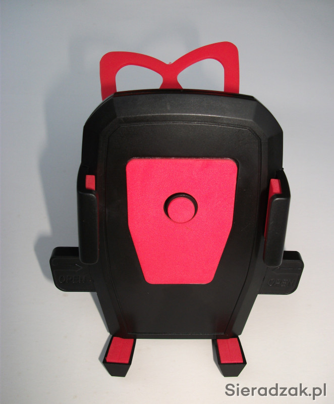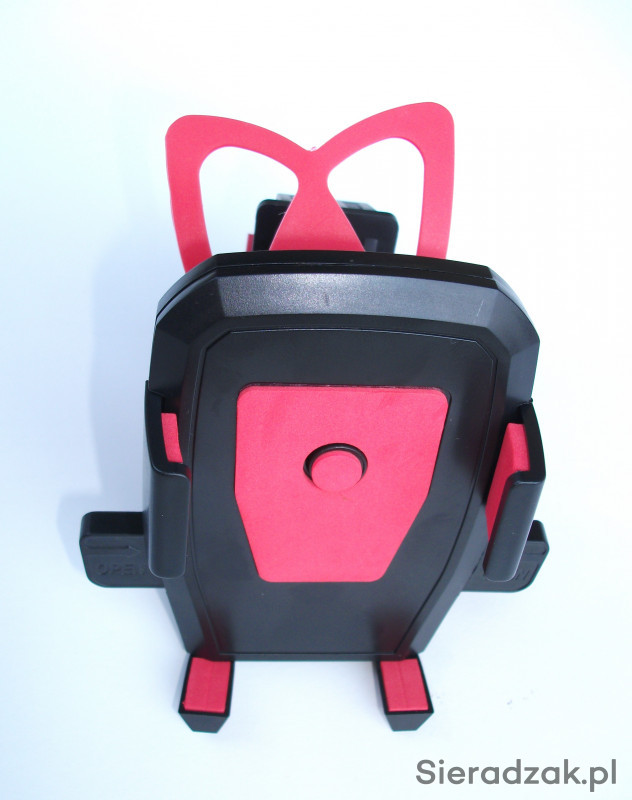 Uchwyt posiada samoczynny mechanizm zaciskowy co oznacza, że łapy zaciskają się i blokują telefon bez użycia dodatkowego pokrętła.