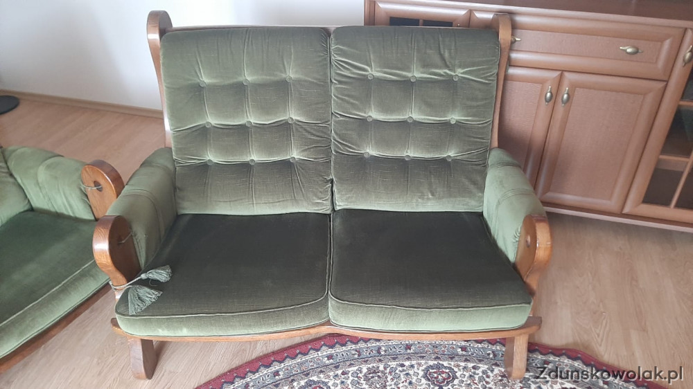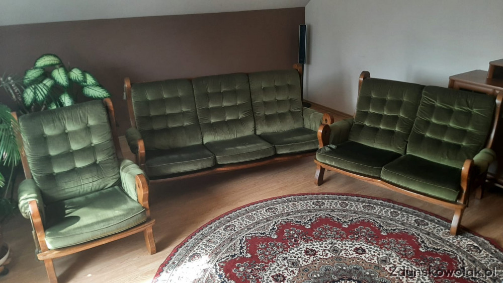 Sprzedam używany wypoczynek - kanapa trzy osobowa, dwuosobowa i fotel. Stan bardzo dobry. Drewno dębowe - antyk. Pokrowce zdejmowane na ekspres. Ostateczna cena pod negocjacje.
