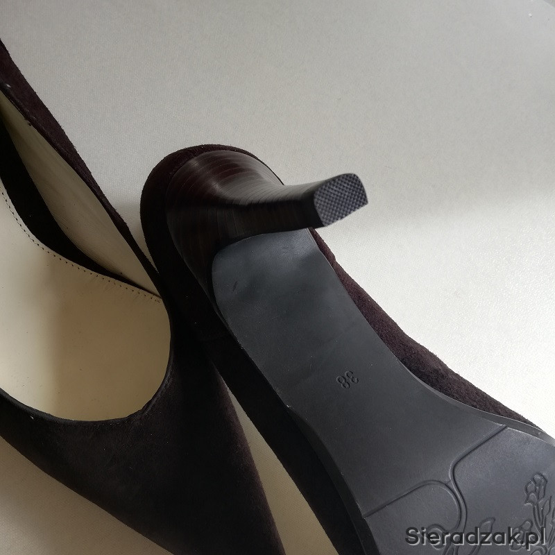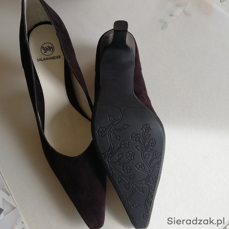 Eleganckie NOWE szpilki SALAMANDER w kolorze brązowym zamszowe.