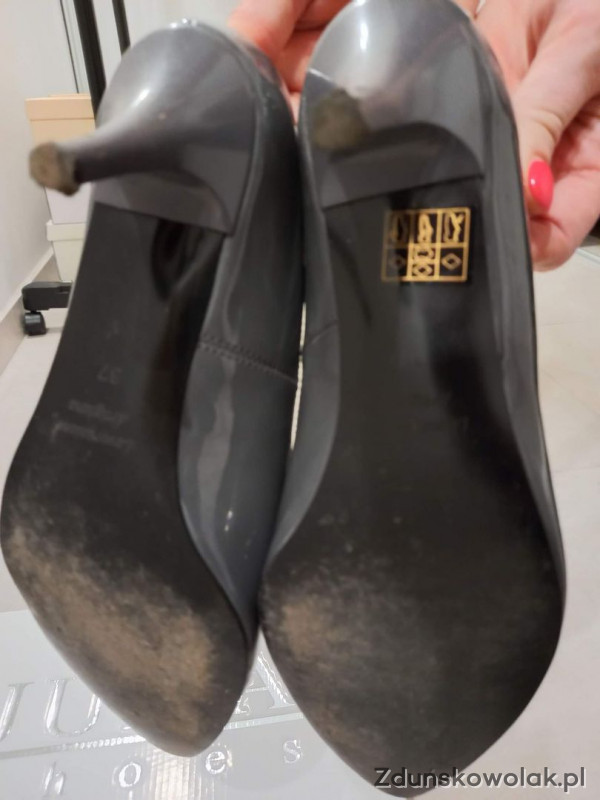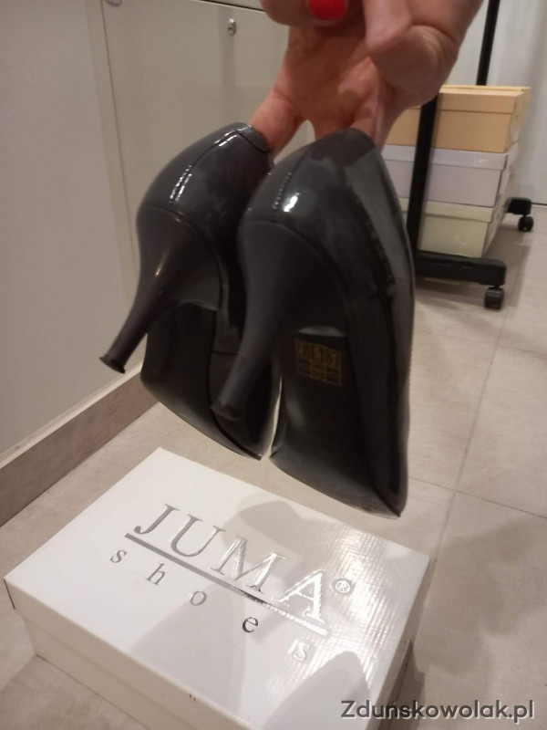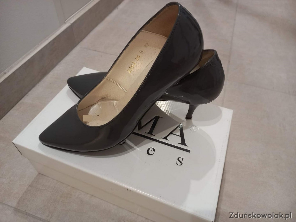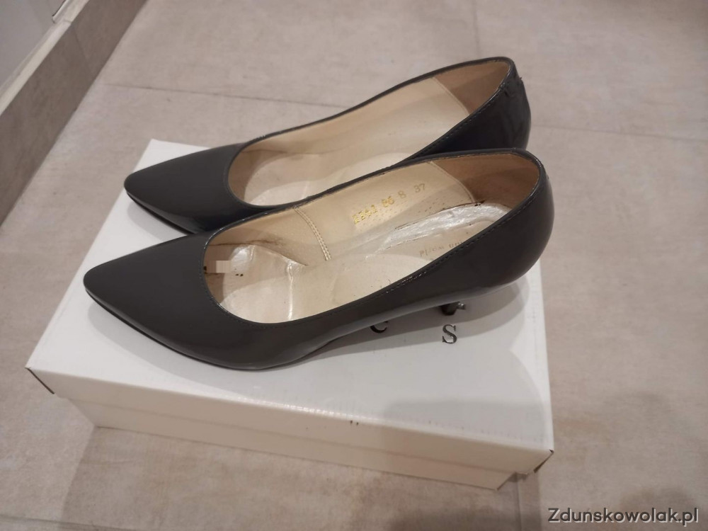 Sprzedam szpilki szare (grafit), lakierowane, firma JUMA.