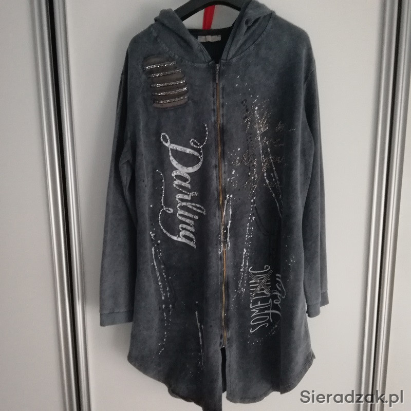 Nowa tunika szara rozpinana na ekspres z kapturem.