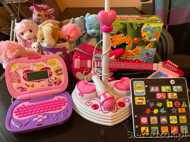 Zabawki interaktywne - komputer, tablet, gitara, zestaw do spiewania i mata do tańczenia.