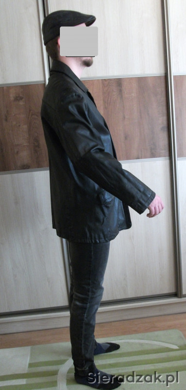 Sprzedam kurtkę męską w stylu klasycznej marynarki z miękkiej naturalnej skóry na podszewce zapinaną na 3 guziki w kolorze czarnym. Kurtka jest odpowiednia dla wzrostu 172-185 cm. Na wszywce jest rozmiar M, ale wg. mnie to jest L dla osób w miarę szczupłych. Model ma 180 cm wzrostu i waży 76 kg.