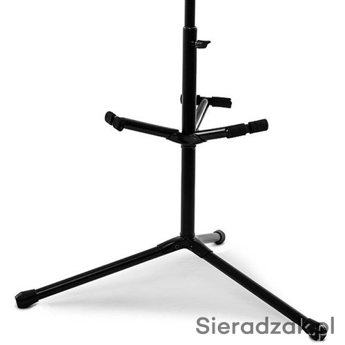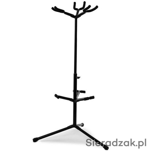 Statyw z wysięgnikiem na 3 gitary. Jest przeznaczony do gitar wszystkich typów oraz ukulele, skrzypiec itp. Główka oraz pudło gitary są chronione przed zarysowaniami dzięki zastosowaniu materiału ochronnego - miękkiej gąbki. Statyw posiada blokadę i regulację wysokości.