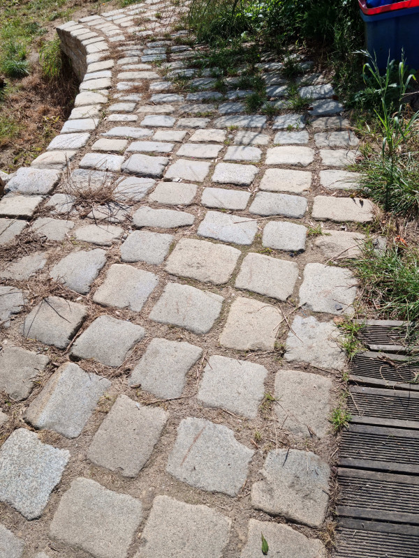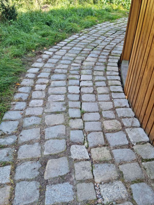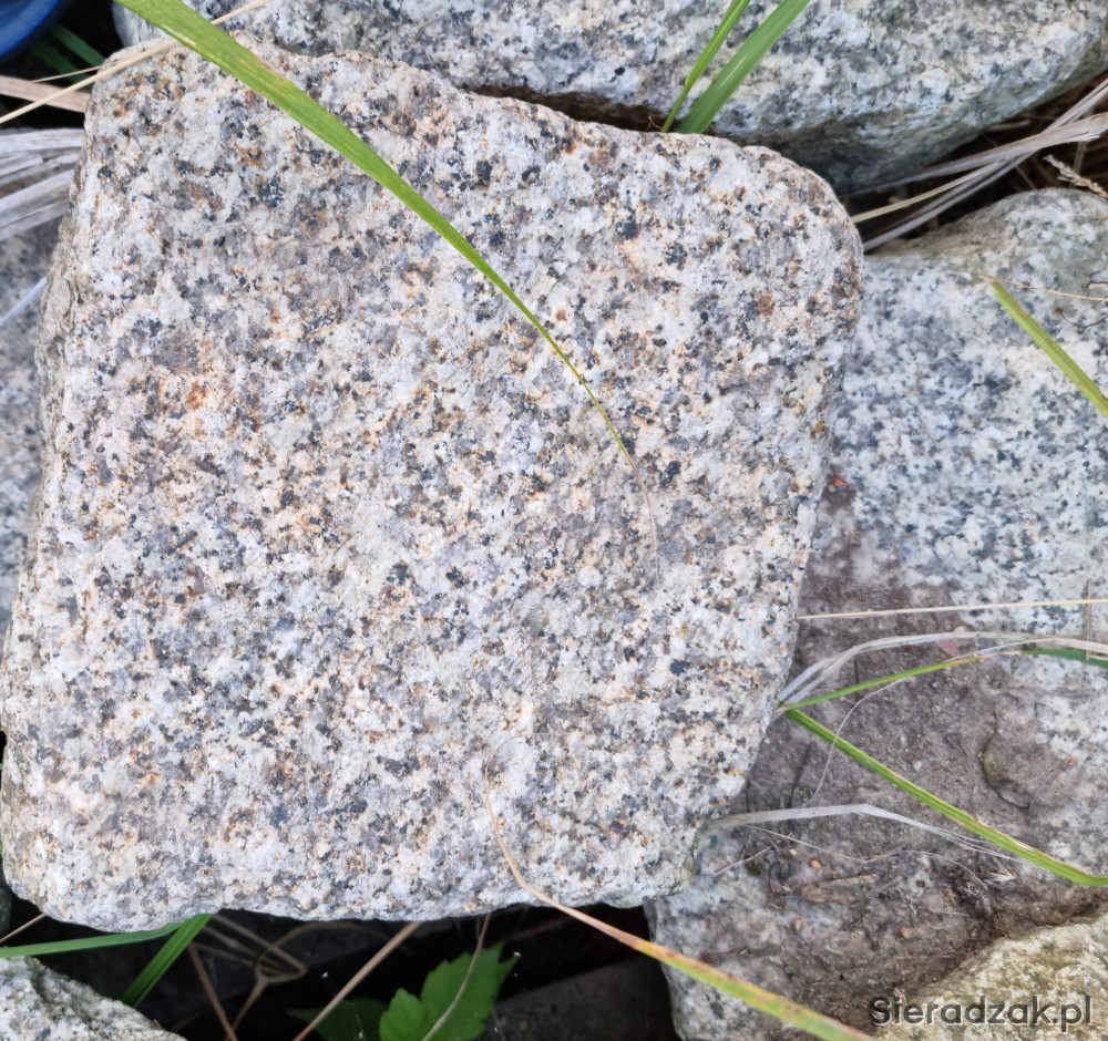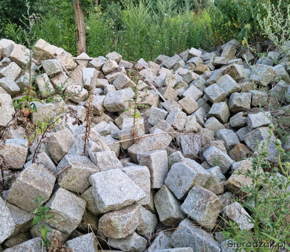 Kostka po rozbiórce starej poniemieckiej drogi - ma ponad 150 lat i wyróżnia się ręcznym łupaniem – podany wymiar kostki jest przybliżony, a każda kostka jest niepowtarzalna.