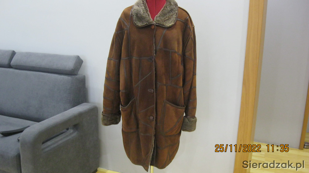 Sprzedam nowy kożuch , widoczny na zdjęciach . Kożuch w kolorze ciemny brąz rozmiar XXL , dokładniejsze wymiary to : wymiar w ramionach około 55 cm , wymiar w pasie około 62cm , długość rękawa na. zewnątrz około 62 cm , długość całego kożucha około 95 cm . Proszę obejrzeć pozostałe moje ogłoszenia , które są ciekawe, a ceny minimalne za tak zwane grosze.