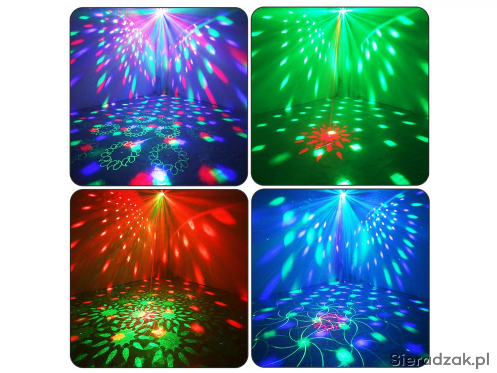 Efekt ze strumieniami kolorów RGB MIX i laserem red i grenn Dzięki temu posiada duże możliwości pracy w każdych warunkach. Każdy użytkownik będzie z pewnością zadowolony mając możliwość użycia wszystkich efektów na każdej imprezie.